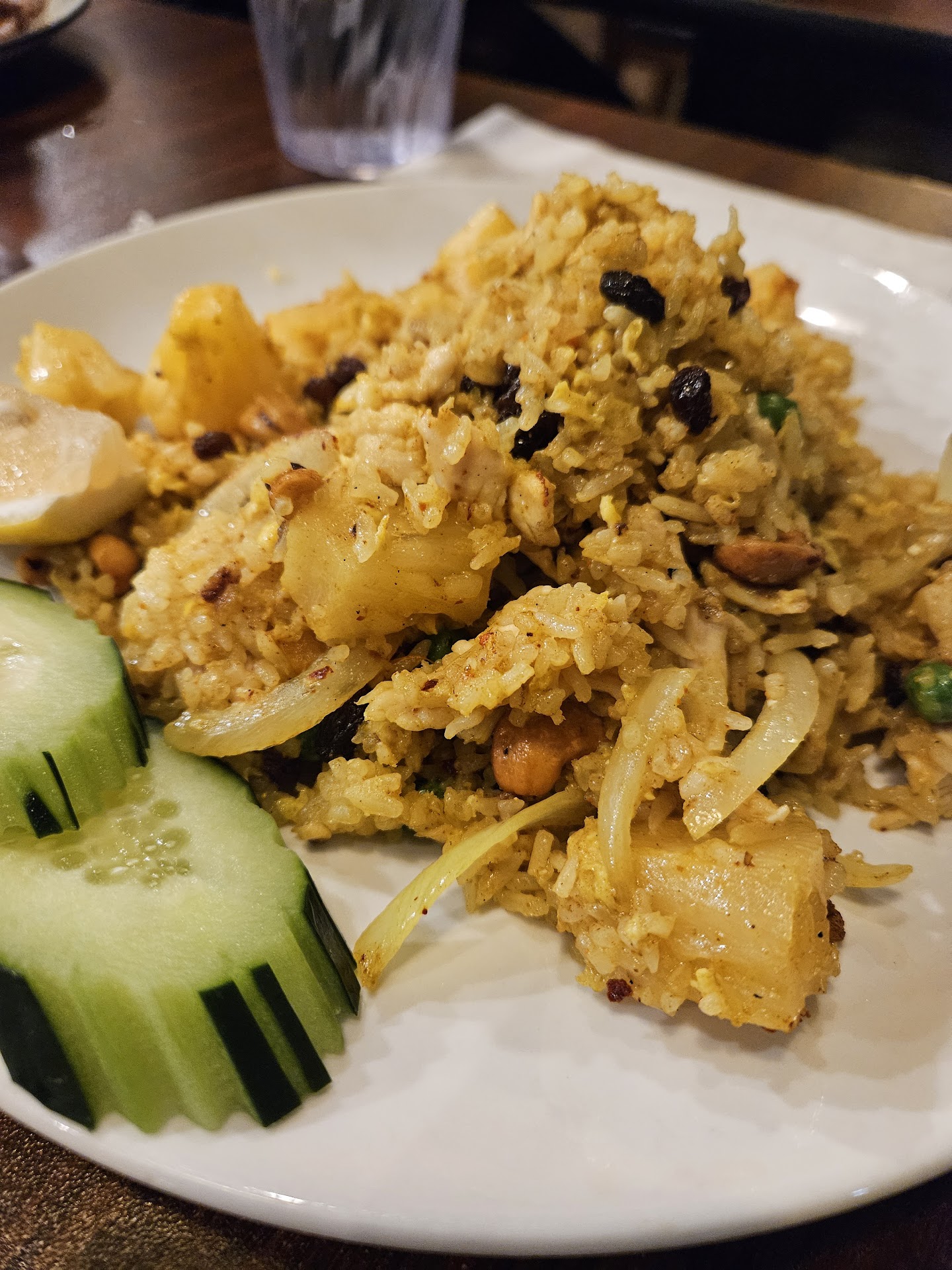 Another dish that I enjoyed was the pineapple curry, which was a fruity and fragrant curry with shrimp, pineapple chunks, bell peppers, basil, and kaffir lime leaves. The pineapple added a nice touch of acidity and freshness to the dish. The shrimp were tender and juicy, and the curry sauce was smooth and aromatic.