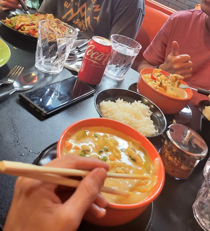 I can't speak to the other dishes or sit down service. The curry and take out was not a...