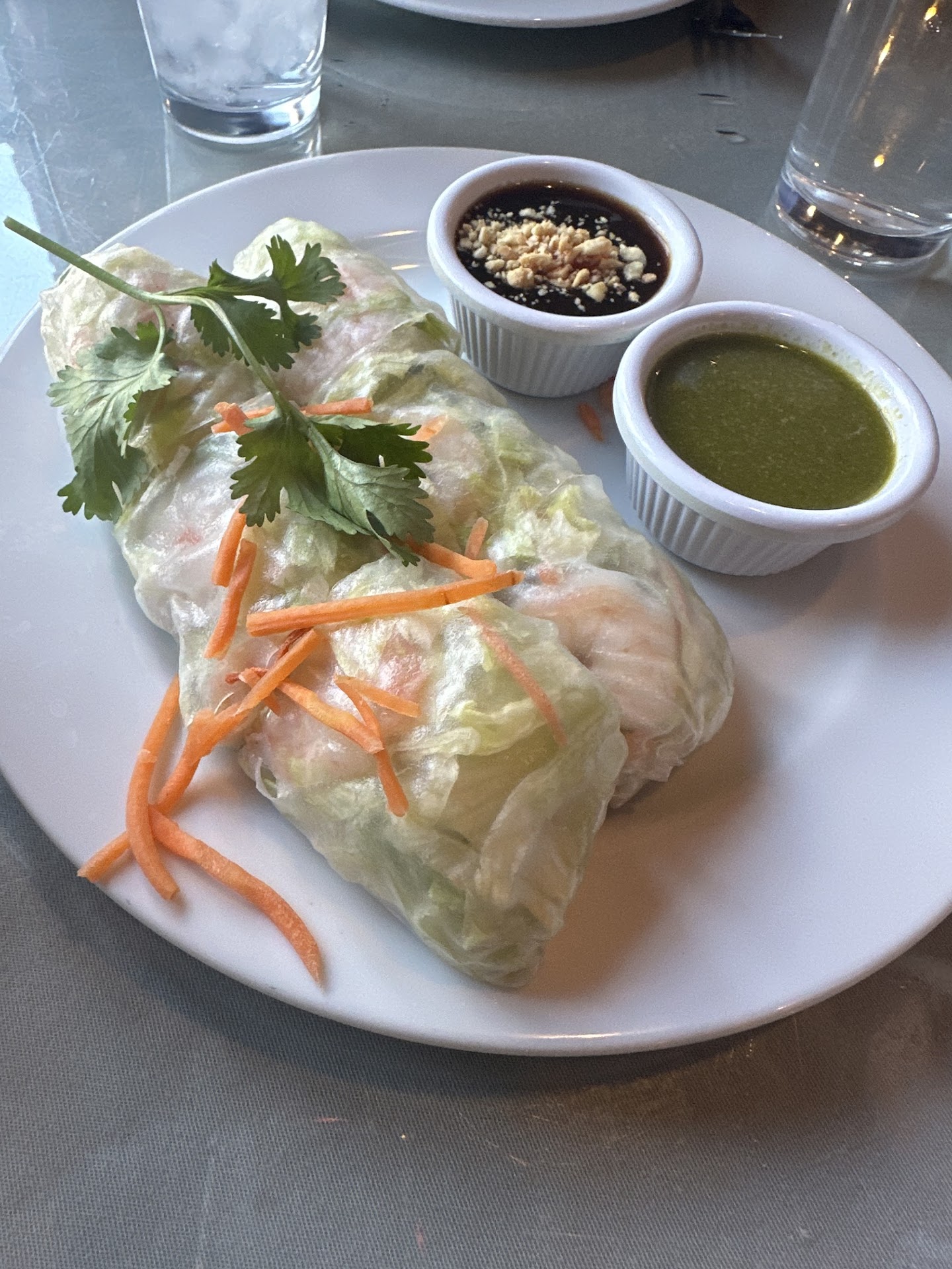 We ordered the fresh basil rolls as a starter. They were large and cut in half with the basil sauce along with a secondary plum sauce. Each bite left your palate desiring more.