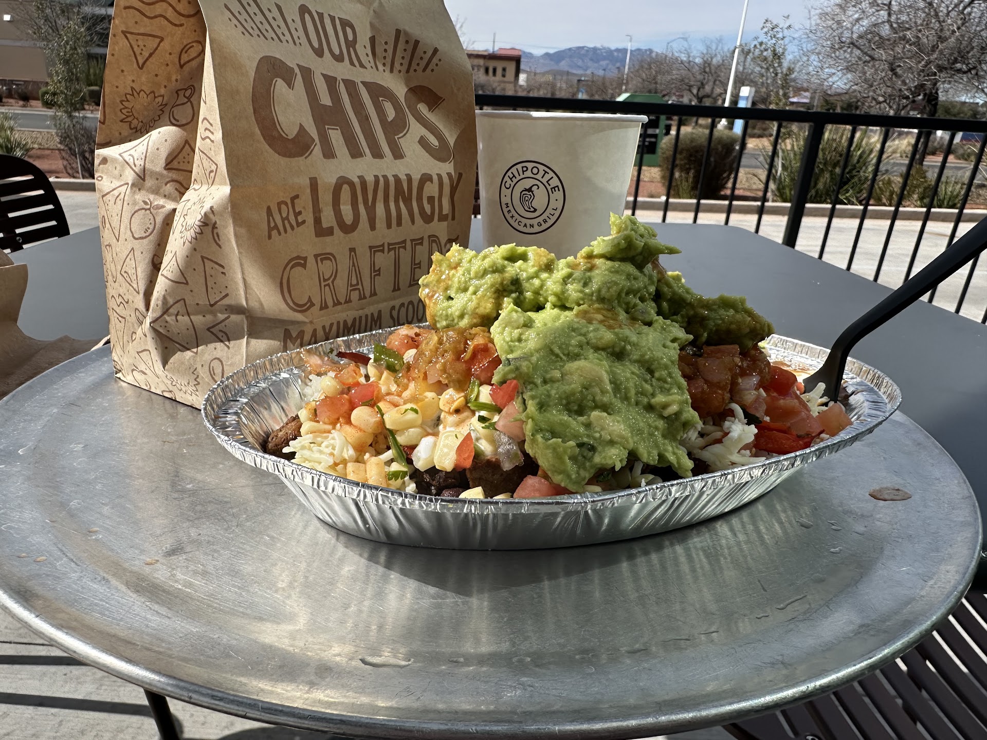 Read moreSo honestly, I'm a bit frustrated with this location. With Chipotle overall, the flavors are pretty good. Not as good as cafe Rio or Costa Vida in my opinion, but good nonetheless. But what bothers me about this location is the inconsistency on how much meat they put from one dish to another. I was with my wife we both got the rice bowl. They put a ton of meat on her bowl and then put about half that amount on my bowl. I'm a big guy, 6'6" 220 lbs. My wife probably weighs 125 with a bowling ball in her pocket. So what the heck? If you're not going to measure it out and go for consistency...at least err on the side of putting a little more meat on the plate of the bigger guy who needs and wants the extra protein. Who knows, maybe he was trying to impress my wife by giving her extra. Either way, not a good way to make a good impression on guys like me. My rating is based primarily on service, which after 3-4 times now is in my opinion...