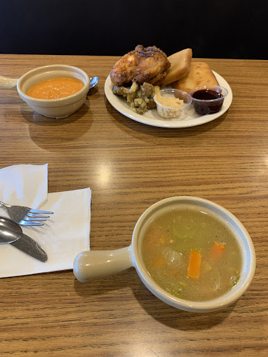 Parking at this location is AWEFUL. Easy enough to get in, but nightmare to park and then "exit" to road afterward. The food here is decent. You don't feel like you've eaten a lot of processed food when you're done, but, you're certainly not going to tell your friends this was a "tasty" place to eat! Ironically, the salad bar(s) are of the best parts of this buffet, tho most of the fares are poured from buckets into smaller containers for customers to scoop up. All of the dressings are fresh tasting, if not made in house. The chicken recipes are nice, tender and crispy when supposed to be. Their "Chinese" options are really, really bad! The rice is bloated and off color, never looking like it just came from a rice cooker, more like waxy maggots visually. Meatloaf and carving stations are fairly good. They serve an excellent cornbread, unfortunately it only comes out 4 slices at a time, so you're lucky to get some. Avoid pizza, french-fries and artificial honey packets. The rolls/buns are usually warm and buttery. Be prepared to pay approx $17 per person (includes drink), with tip $20+. Is it worth it? It depends: if you're in a hurry AND the parking lot isn't crammed full, AND you're hungry enough to mete the cost, then yes. However, if you're in your 20s-30s and like a more lively crowd, then no; try...
