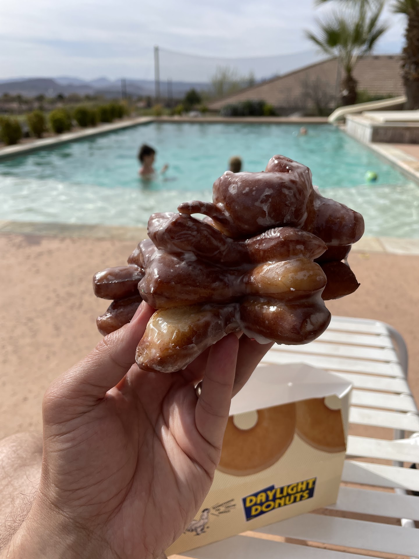 Read moreEvery time I've gone to Daylight Donuts in St. George I've had the same experience. I wait in line for about twenty minutes, looking at the half-empty display case trying to decide which donuts to select that are still available, because I don't want to be one of the folks who orders something not ready and has to wait again.