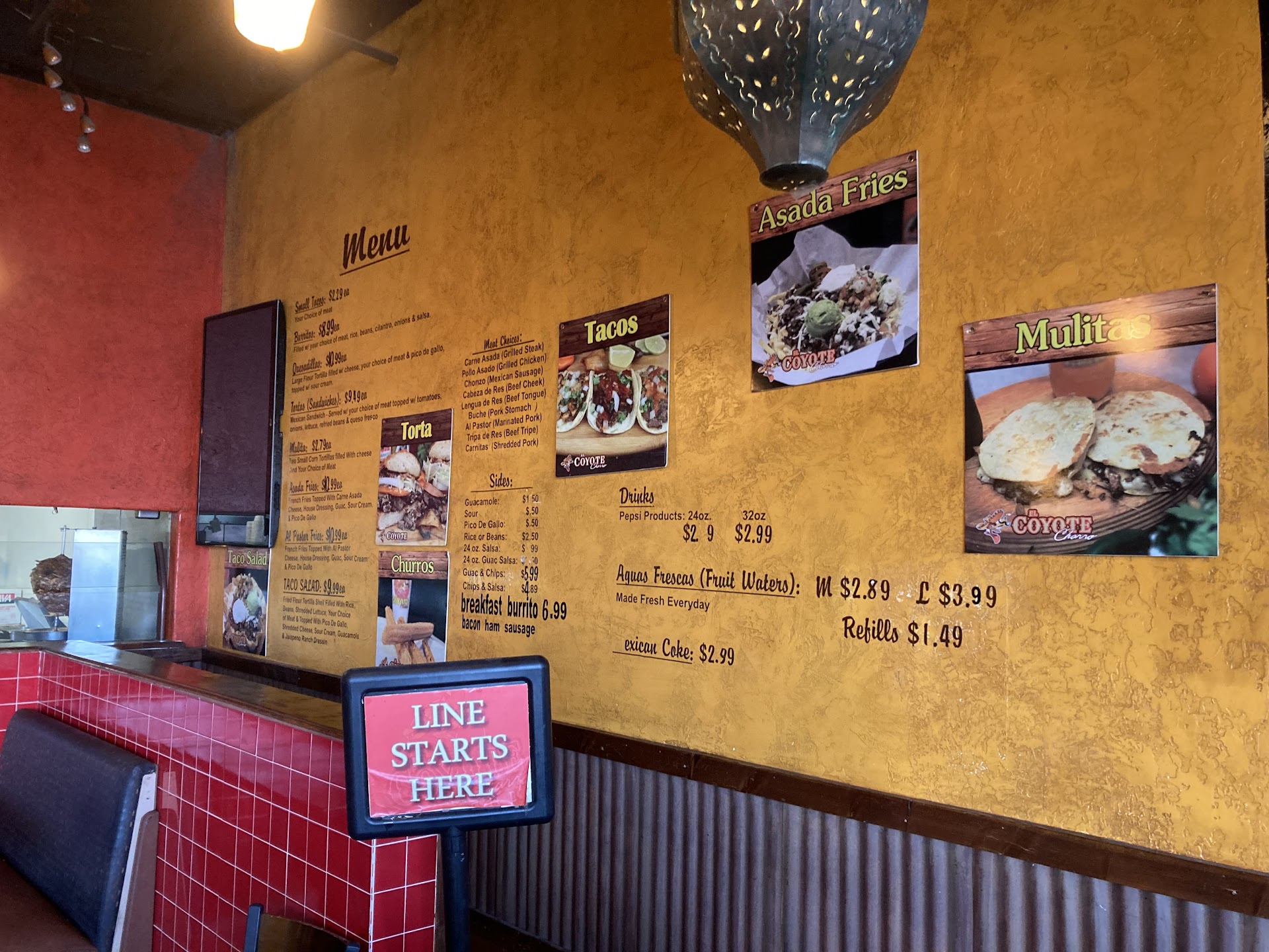 Read moreThis isn't really a review, as much as it is a critique for the owner. When Coyote first opened, it was popping. Always full of people, with a line of people waiting. You used to need to call in advance to beat the lunch rush. Now every time I go here, it's empty, and doesn't have the spark it used to. I suspect that it was sold from the original owner, and the new owner doesn't have the same love for it. Back in the day, everything was basically 5 bucks, except for the taco salad or fries. Now, it's 10 bucks a burrito. Here's the deal... I'm sure you jacked up the prices to boost profits, but I'm willing to bet you would be more successful if you dropped the price, and kept the quality. Seriously, consider it. You probably lost 80% of your customers with the price hikes. Me and my coworkers went there EVERY DAY for months. That's 25 bucks/per person, per week. And there were like 6 of us. Now, you're lucky if you catch me here twice a year.