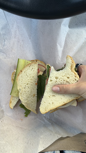 First off, the vibe is really awkward. Felt like I came in after they closed (I didn’t, they’re open 3 more hours). There were 4 employees there and no customers when I walked in and somehow none of them managed to acknowledge me. It’s a small store so this was almost impressive. There is also no music. They were doing chores around me but not letting me know where they were trying to go so I just felt in the way and super uncomfy. I stood back and read the menu for a couple minutes and then stepped up to the counter to order. There are three employees still standing behind said counter and they all just kept doing what they were doing. Which if they were busy is understandable, but whatever they were doing sure looked like doing nothing. I ordered a whole Adam and Eve sandwich which came out to $10.56. It’s a very similar store to Kneaders so I was expecting similar size and quality. This isn’t the case. When they say whole sandwich they are talking about grocery store sandwich bread size of sandwich. Taste was decent, but I was expecting better. The food was fresh and the store seemed clean, but ultimately I’m $11 in the hole and still starving. Probably won’t...