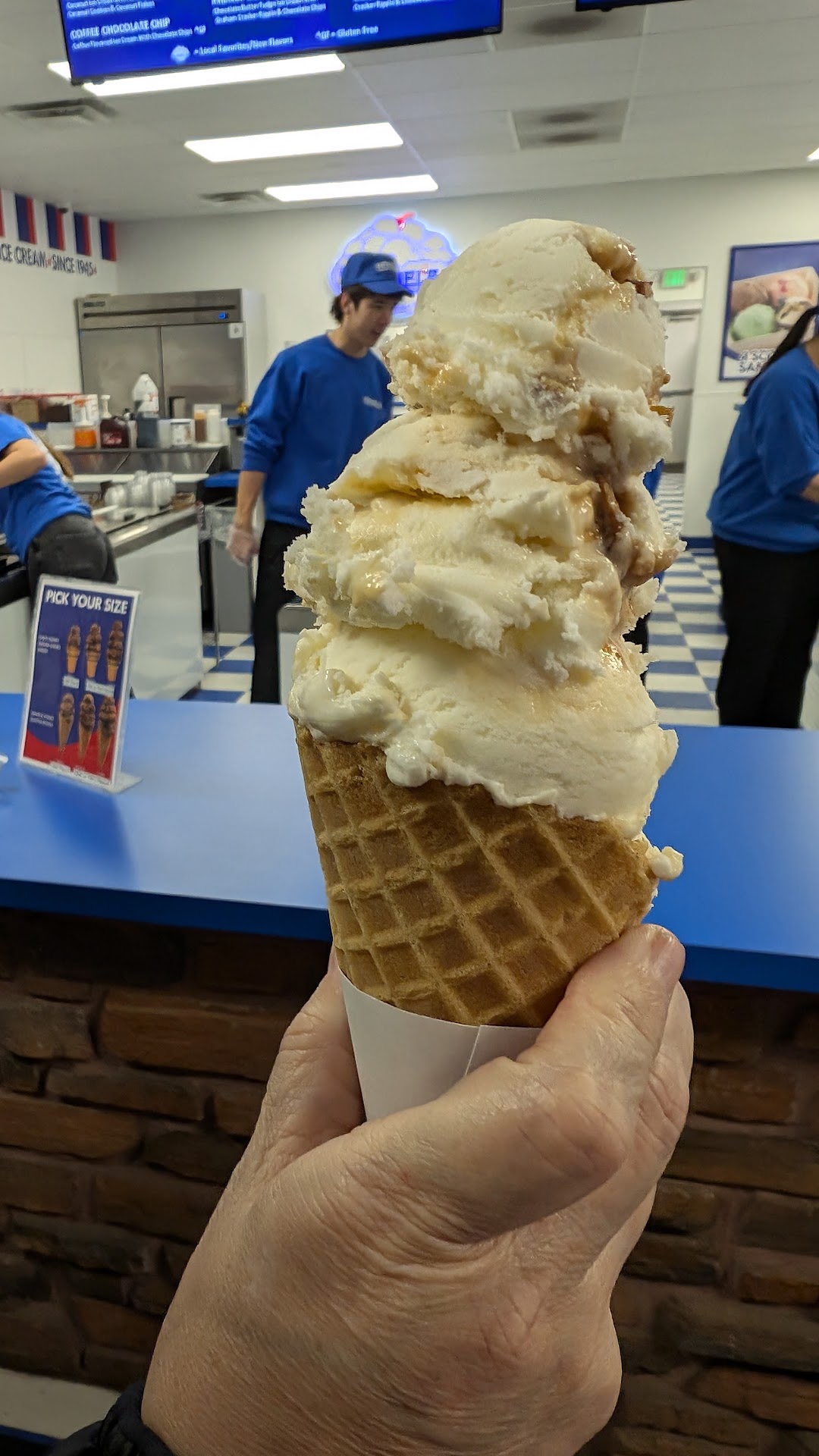 I wanted less ice cream but they told us the only way for me to get two flavors is to get a double scoop which is actually 4 half scoops, which doesnβt make much sense to me. Why not just give me 2 half scoops of 2 different flavors? That was a bit confusing and we ended up spending way more on ice cream than we wanted. It was a bit overpriced in my...