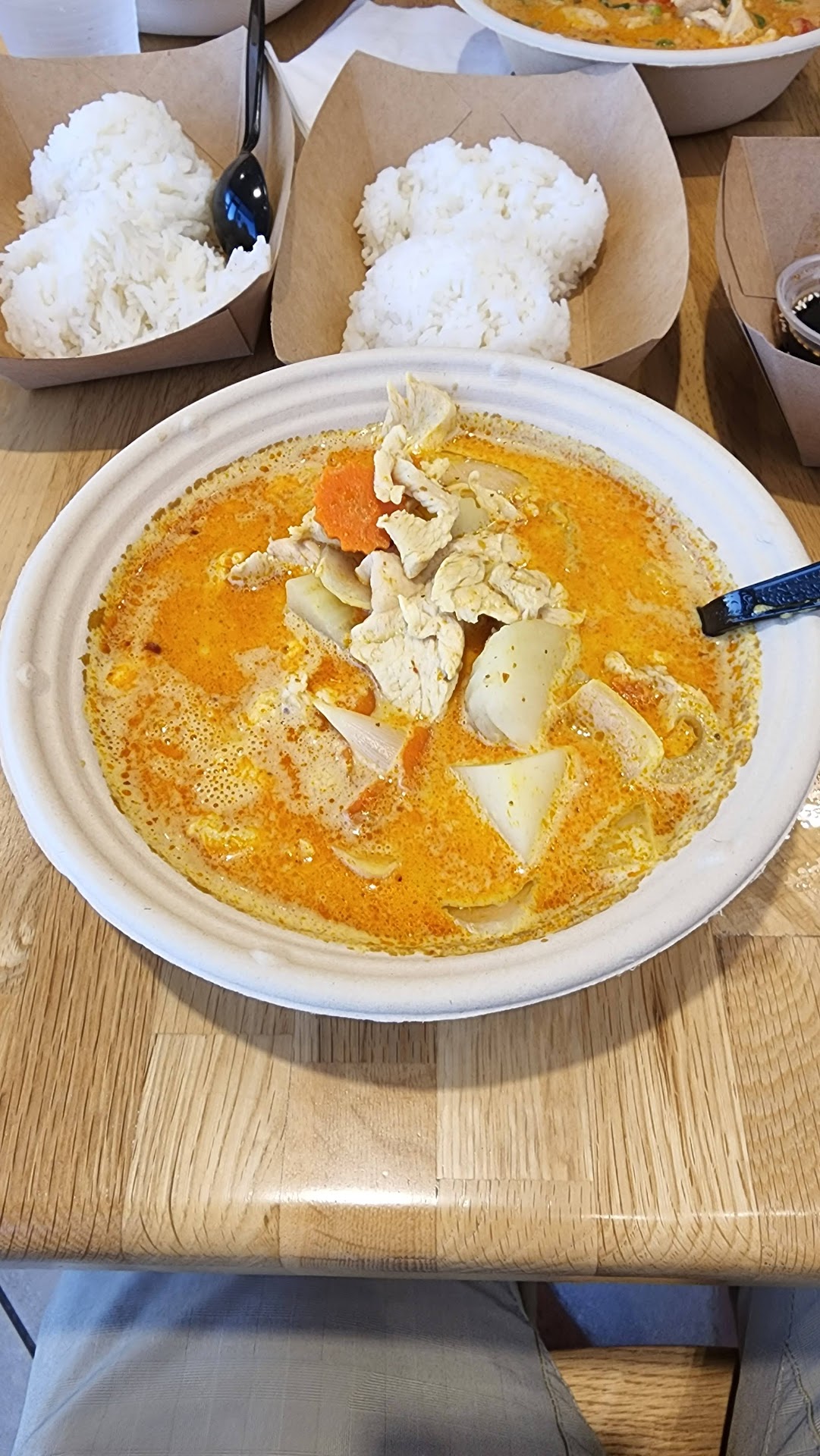 Only suggestion would be to order extra rice. They give two scoops that are about 2/3 sized scoops. The amount of curry they have could probably go with 4 scoops. Overall great Thai food and a couple dollars cheaper than many in the area. Would not hesitate...