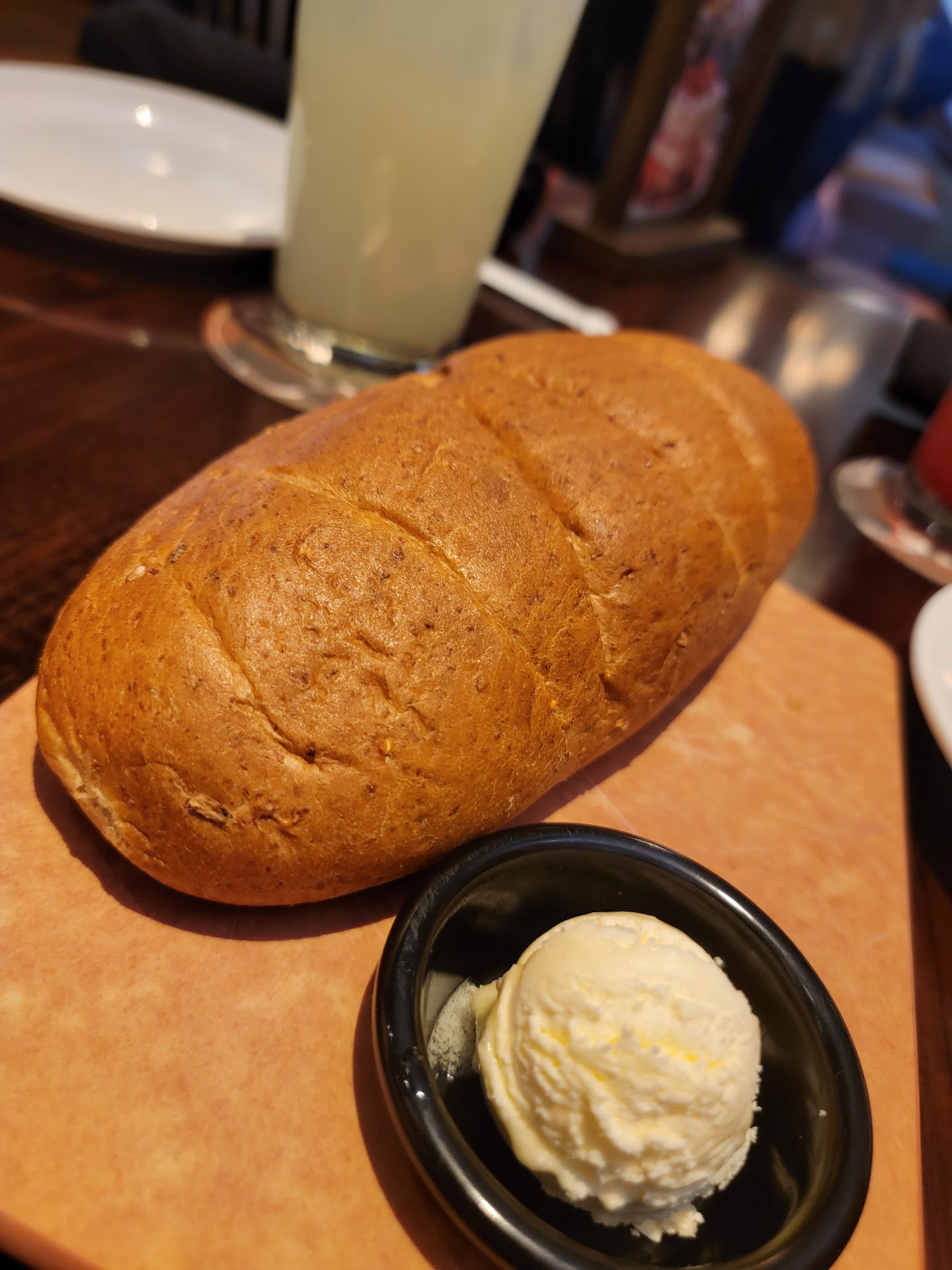 The complimentary bread and butter were ok. The bread was healthier, and the butter was so cold it would not spread. Locals may not appreciate this bread as much as the bread from steakhouse competitors. We let them know that the Texas Tonion was overseasoned. It was visible enough that they apologized and did not charge us for it. The house salad was good, and the honey mustard dressing was among the best in town. The Loaded Potato Soap was perfect, and my wife will order it again on a future visit. My wife's Parmesan Crusted Chicken was also overseasoned, just better than the tonions were. She will try something else when we come back. The 9oz filet was good. Surprisingly for a filet, it had some gristle. It was cooked perfectly, and I would order it again without seasoning, which took away from the filets' natural flavor. The Mac N Cheese that came with it was good. The Strawberries & Cream Shortcake was the best part of the meal. It was the highlight of the meal despite not being a dessert addict.