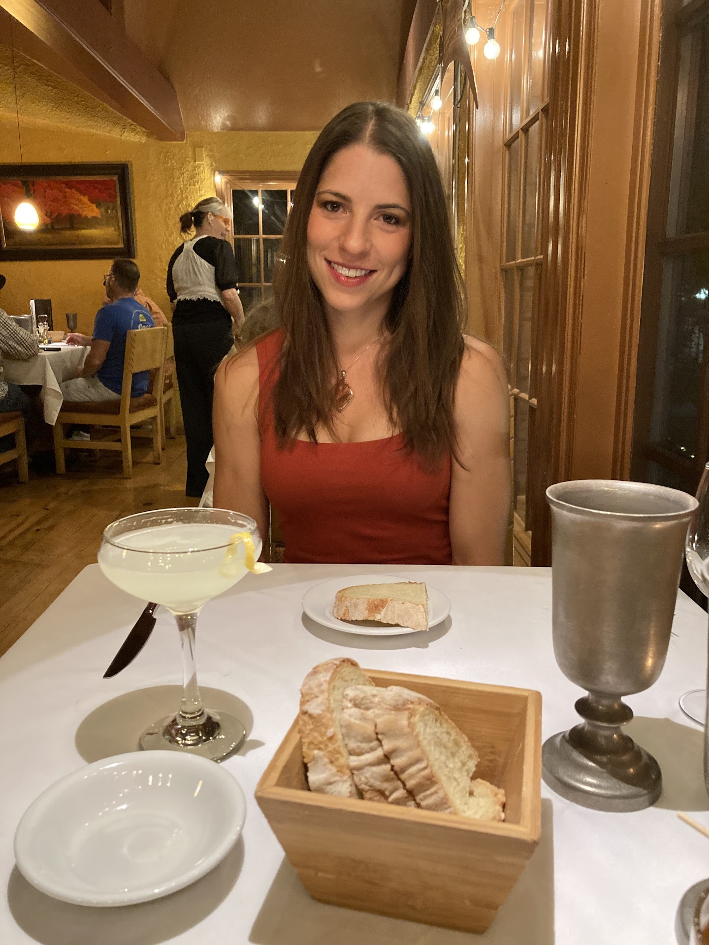 The good: The dĂŠcor of the restaurant was well appointed with muted colors and pleasant lighting that made our dinner pleasant before the food was ever served. Our server, John, was attentive and very helpful in describing the dishes. Unlike the normal âeverything is good hereâ response we often hear, he went into detail about the dishes and made helpful suggestions that we appreciated having never been here before. The support staff were also polite and unobtrusive while still making sure we had everything we needed. Their bar is not extensive in different bottles they offer. Instead they focus on making one or two specialty drinks with one example of each type of liquor and the bourbon (Bulleit) and Rye (high west double rye) drinks we tried were very good. I glanced over the wine list which had several bottles I recognized with reasonable pricing, but we brought our own bottle for the evening. The stilton fritters (pictured) were like fine ground hush puppies filled with blue cheese. They are normally a side dish, but we ordered them as an appy because they just sounded too good. Flavor was a great mix of fried crunch with a salty, funky taste. The only thing I would say is that they would have benefited from a sweet counter flavor as a sauce or maybe even in the fritter with the cheese. The other appetizer we had was the locally-sourced heirloom tomato with mozzarella (pictured.) Visually this dish was stunning. The favors of all the ingredients were very harmonious and complementary and the white balsamic gelee cubes were a brilliant and unexpected treat. It only fell short in one aspect, but more about that in another section. The french onion soup (pictured) was beautifully presented in a hollowed out onion supported by a bed of course salt. The flavor was as good as any version I have tasted without being overly sweet. Our entrees were wonderful. I thoroughly enjoyed the juniper brined, bone-in pork chop with blue cheese walnut stuffed pear, sweet corn bread pudding, and smoked tomato relish (pictured.) Perfectly cooked to medium and juicy with a sweet, smoky, salty relish that complemented the meat in every way possible. This is not you're mom's pork chops and applesauce! The pear was a wonderful balance of texture and sweet/salty/unctuous that played wonderfully with the pork as well. The savory bread pudding reminded me of a more substantial yorkshire pudding with occasional satisfying pops of sweet with the incorporated sweet corn â so much more interesting than the standard potatoes gratin I often see with this poke chops. Highly recommended. We also found the seared ahi tuna with pan-fried noodles, wasabi aioli, edamame, and orange mango sauce appealing both visually and in flavor. The tuna tasted very fresh and was seared perfectly. The accompanying noodles were satisfying and well prepared â also recommended. The prices are also what I would consider reasonable based on the level of service and the artistry that went into the meals.