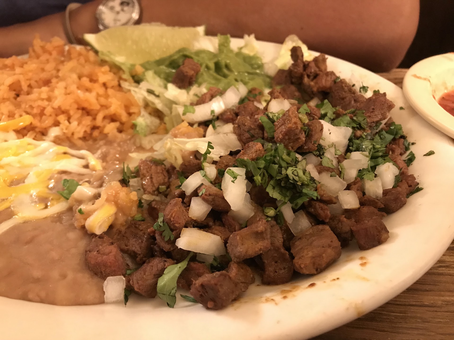Read moreWhat can I say, my family and I stopped in hoping for some good mexican food. We liked the catchy name and figured it would be an authentic place to go. It was a Saturday night and there were only 2 tables occupied. That should have been our warning. We were greeted by a very friendly waitress who brought out chips and salsa. As soon as I tasted it both my son and I said at the same time "this tastes like Pace picante sauce" yes, the kind they sell at Costco. It was definitely not homemade. I ordered 2 chicken tacos (crunchy) with rice and beans, my son ordered chicken fajitas ($17). I was expecting a piping hot deep fried taco shell but instead it was a premade shell with pulverized chicken similar to what you find in a baby food jar. It had a few pieces of lettuce and a sparse amount of cheese. The rice and beans were a joke. It was maybe a 1/2 cup full of each and was NOT fresh. My sons fajitas came with only 5 half strips of chicken the rest was onions and peppers for $17 ! The server felt so bad she brought out another set of chicken (5 very small strips). The only good part of the meal was the nice server and the plans that we made to stop at Culvers on the way home because we left hungry. Taco Bell would have done a better job and would have...