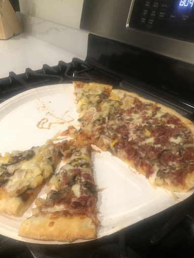 I got to the shop really close to closing time and was given the choice to buy a few different premade pizzas for a discounted price. This was a nice surprise and bought a type of pizza the we normally don't get. With the discounted price I thought we could try something new! Thank you! I had to give 4 stars because when I drove up in the parking lot and could see into the store, out of the 5 employees working only 1 person had their mask on. Don't get me wrong they all had masks they just weren't wearing them around all the food that is on the pizza making line. There was a shift manager/supervisor who walked into the area where the employees were that were not wearing their masks and did not appear to have said anything because no one put their mask on even in his presence. I guess that was to be expected because the shift manager/supervisor did have his mask on, in fact he didn't even have a mask with him. Employees follow by example. As soon as I walked into the store everyone put their masks on minus the supervisor, he didn't even have one with him. When I got to the counter I told the employees that I was smiling under my mask and I had a silly question. I asked something to the effect of "who knew if only wearing a mask when customers are in the store defeated a large part of the reason why you wear a mask around food?" I raised my hand. No one else did, I really didn't expect them to lol lol but the supervisor mumbled something under his breath but wouldn't repeat it when I said I didn't hear what he said. I know they heard my words about wearing masks around food but have no idea if they got the message. Good pizza, good price, lousy...