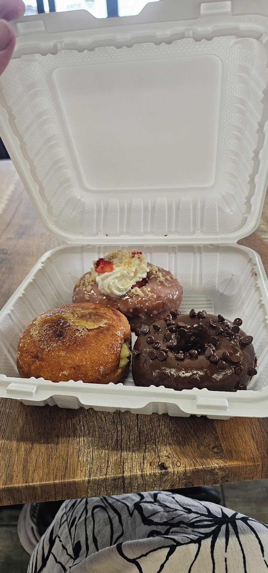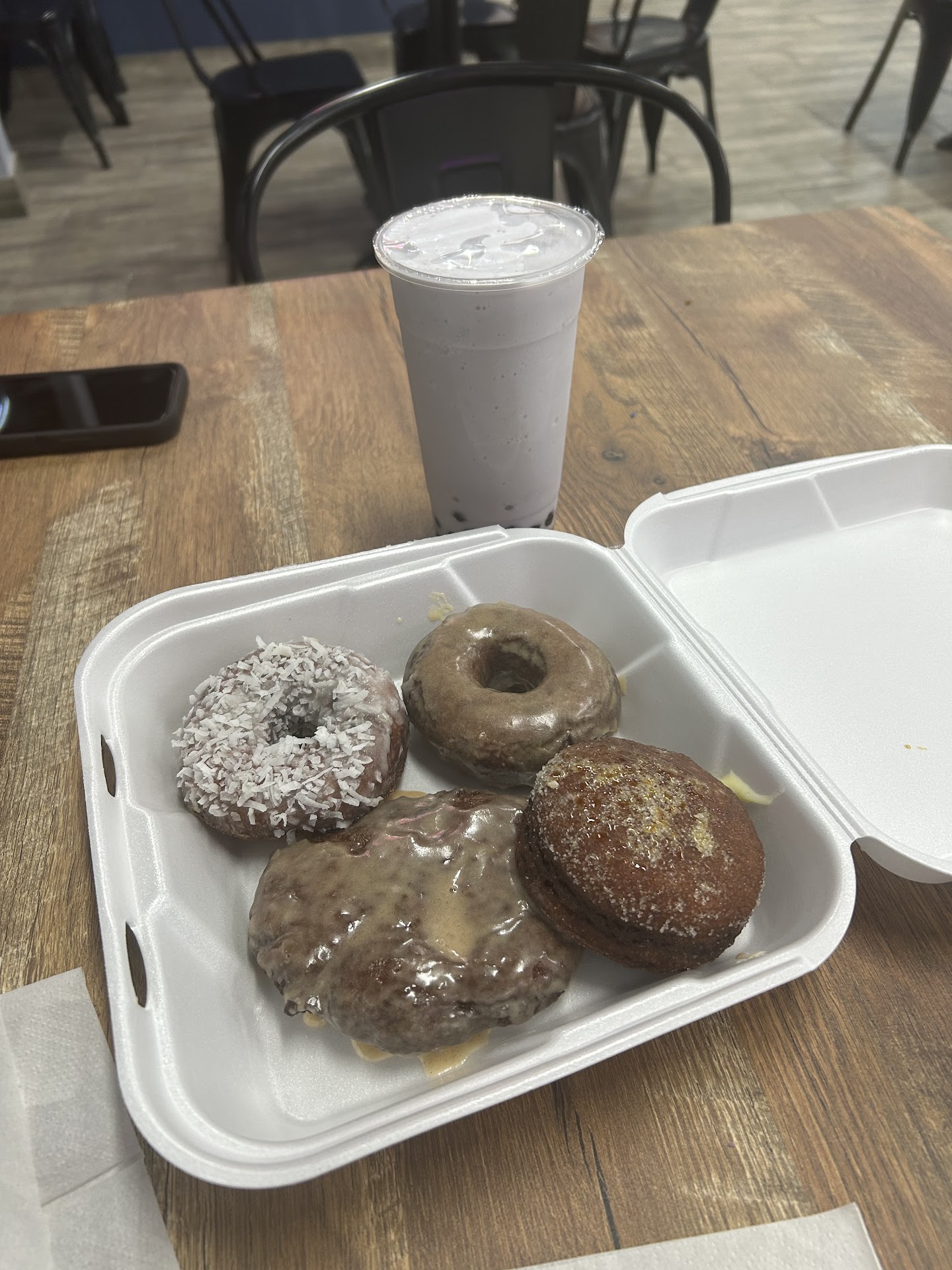 We made simple choices: a smoothie ($6) and a made-to-order creme brulee-filled fried bread item ($4.75).