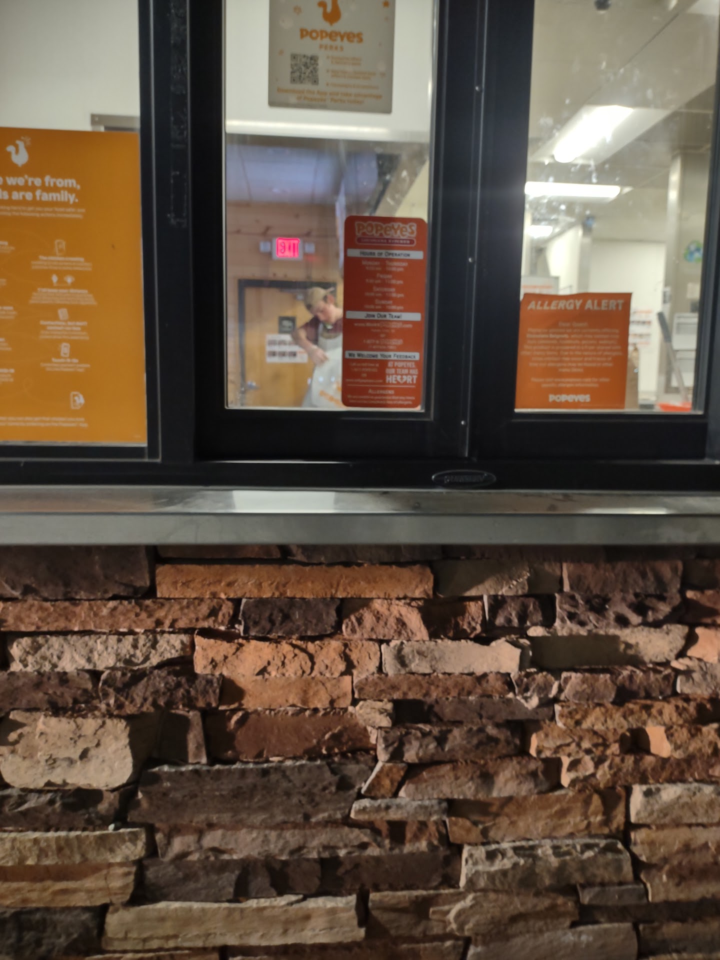 Read moreI went 7/17/22 somewhere between 6:30pm-7:30pm. I went in & went to the bathroom while my husband went to order. I came out and he still had not been asked his order. There was no order line. There was only a door dasher waiting to pick up an order. No employee said anything to us. Not even “We’ll be right with you.” They had two orders set on the counter. Finally the DoorDasher asked if his pickup was ready. The young boy looked at the receipt of one of the orders and said “Oh yeah. This is it. Sorry.” We still waited to have our order taken. We were right by the counter. There was one male employee behind the counter putting together an order, one male in the back cooking, and two girls standing around complaining about the scheduling. No one looked at us. We were there for about 15 minutes total without a single recognition. Finally I asked one of the guys if we could order. He sighed in annoyance and went to the register. I said “Are you okay if we order?” He said “Yeah that’s okay.” But still annoyed. Come to find out they only had spicy chicken available. We ended up going to KFC. Who is running this Popeyes? I understand maybe they were stressed from a possible rush beforehand??? When we went in there was two cars waiting for their drive they order and none ordering. No one inside waiting to order but us. What was the hold up? How hard was it to acknowledge us? Why was the guy who finally helped us stressing while his two coworkers were...