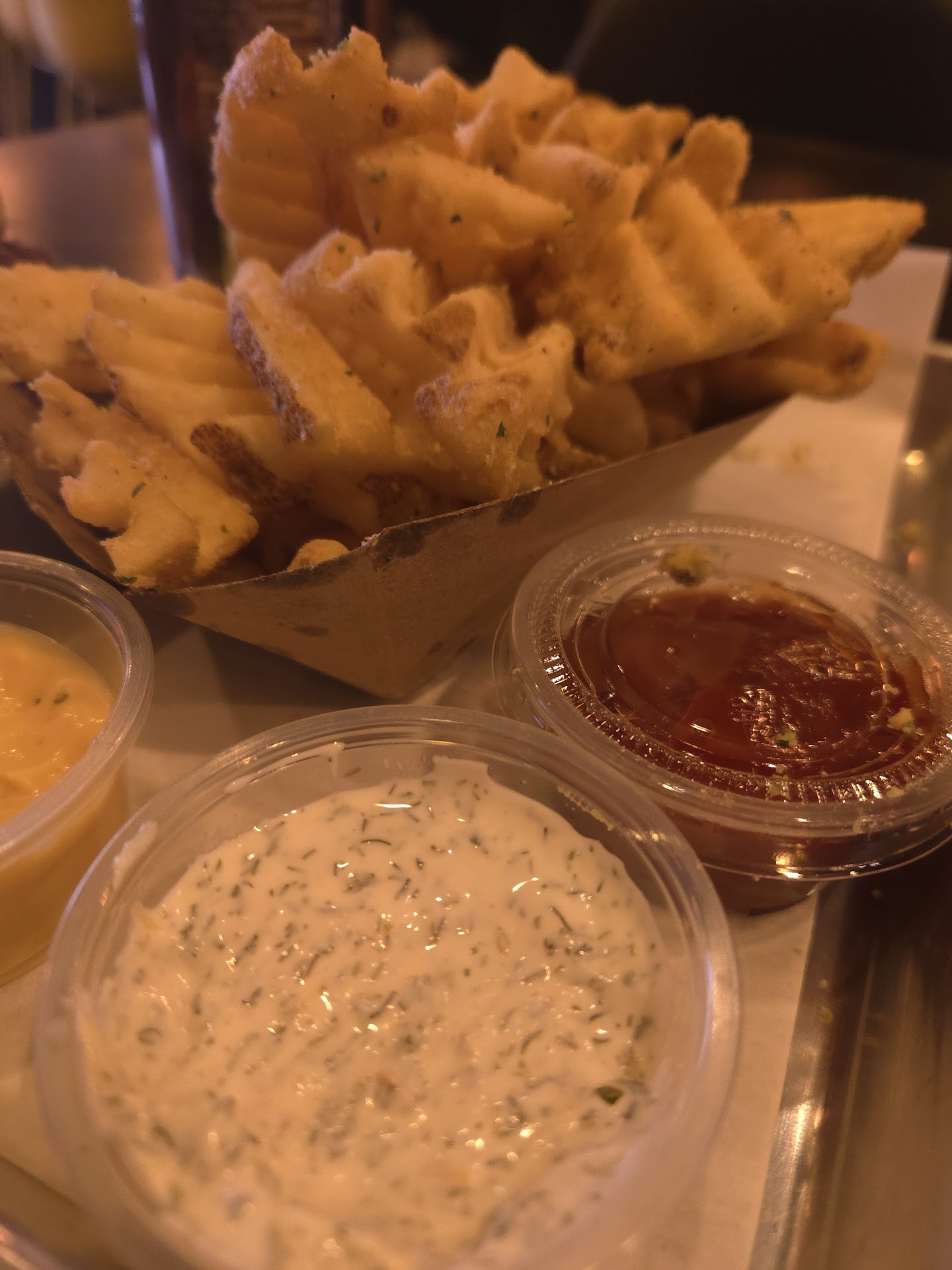 As a side we shared an order of waffle fries Ranch flavored. They were hot fresh and crispy and more importantly quality. Fried foods have multiple levels and its easy to take the cheaper way out and they absolutely do not.