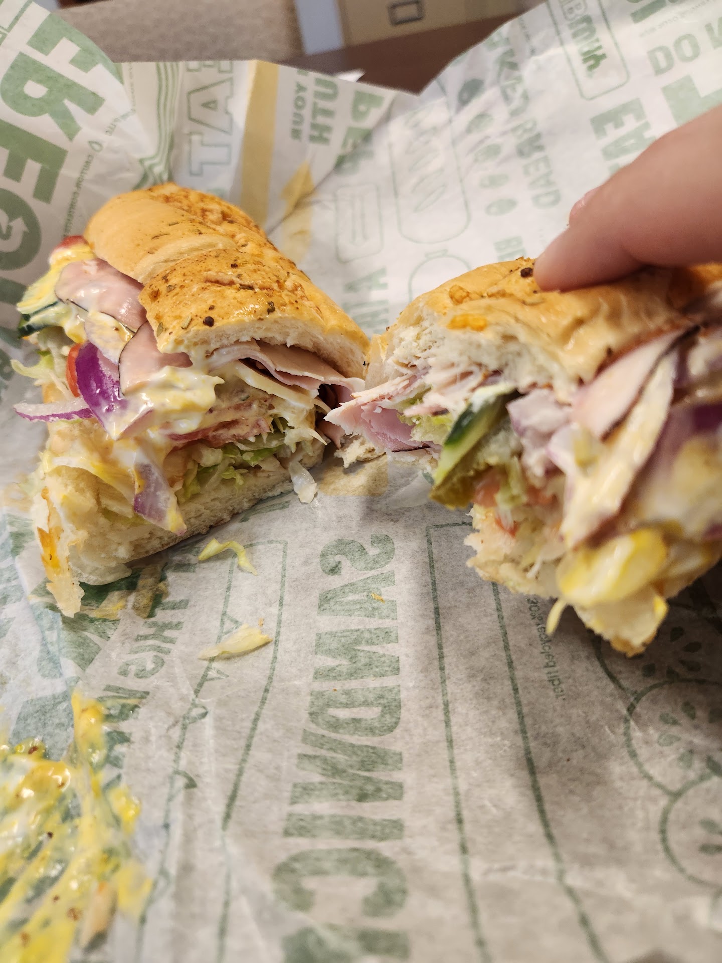 Ā Ā Ā Read moreThe sandwiches are perfectly cromulent, but whatever controls they have in place to maintain cleanliness are utterly ineffective. They weren't exactly overwhelmed with business while we were there yet every table in the place was dirty, the soda fountain was so sticky it could have doubled as a fly trap and there were nooks in the bathroom that probably hadn't been cleaned in months. To top it off Helpy Helperton folded my sandwich with a knife that had residual mayonnaise from the previous customer's sandwich; since my sandwich didn't have mayo it's safe to assume that I didn't actually want to have any on it. To summarize: The food was exactly what you would expect and receive at any Subway on Earth. The Cleanliness and Operational controls need drastic...