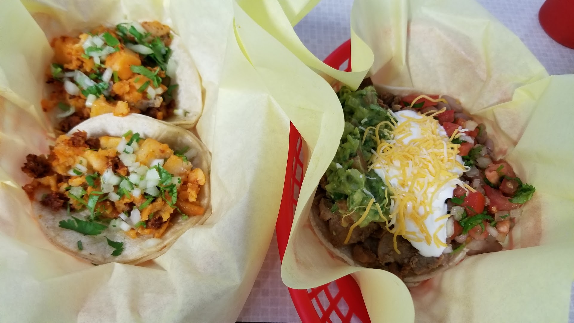 This hidden gem has outstanding Mexican food at great prices. Tried their chicken & carnitas tacos and the large nachos. All excellent. The service was fast & friendly. The atmosphere was funky but very clean and bright. We are definitely going back. Will try the Carnitas plate next time, it looked awesome!