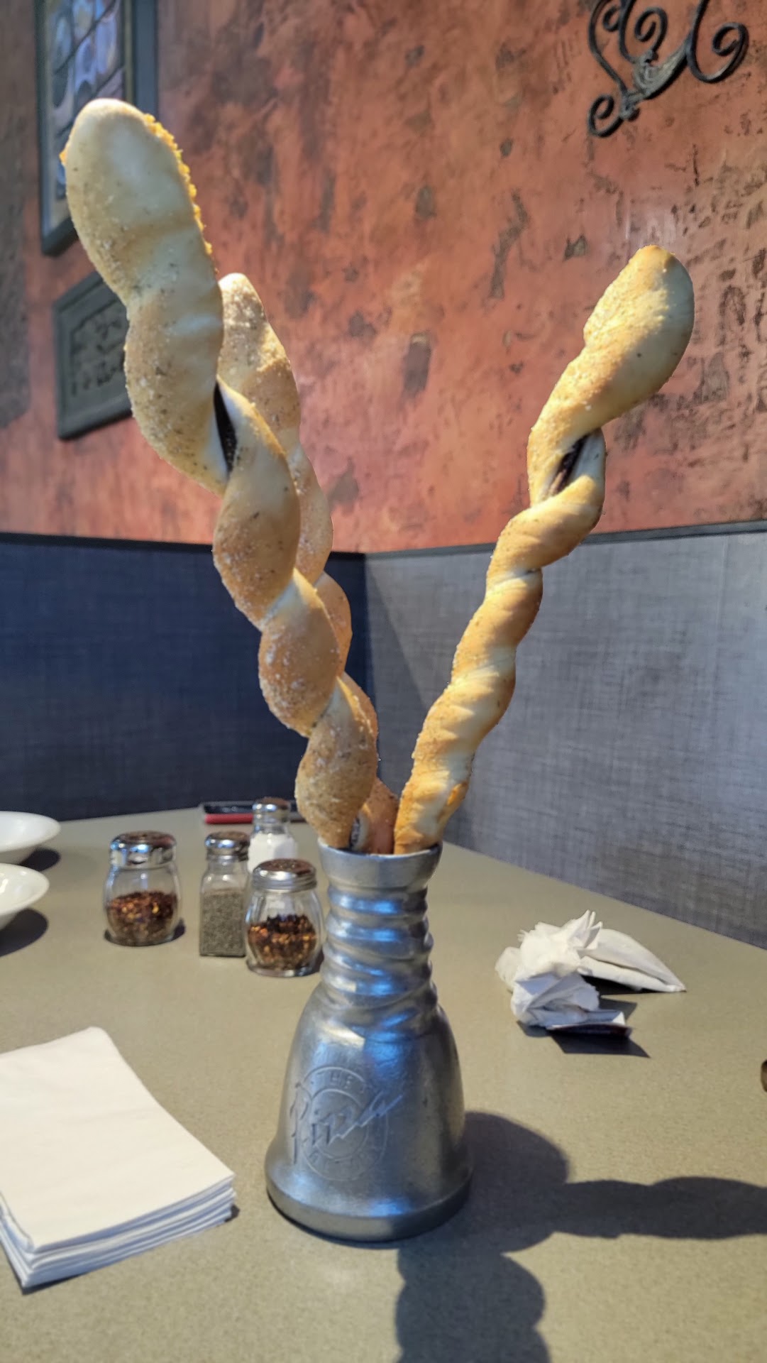 The breadsticks & pasta were delicious—whatever they do to the chicken is amazing. Alfredo dipping sauce is delicious as always.