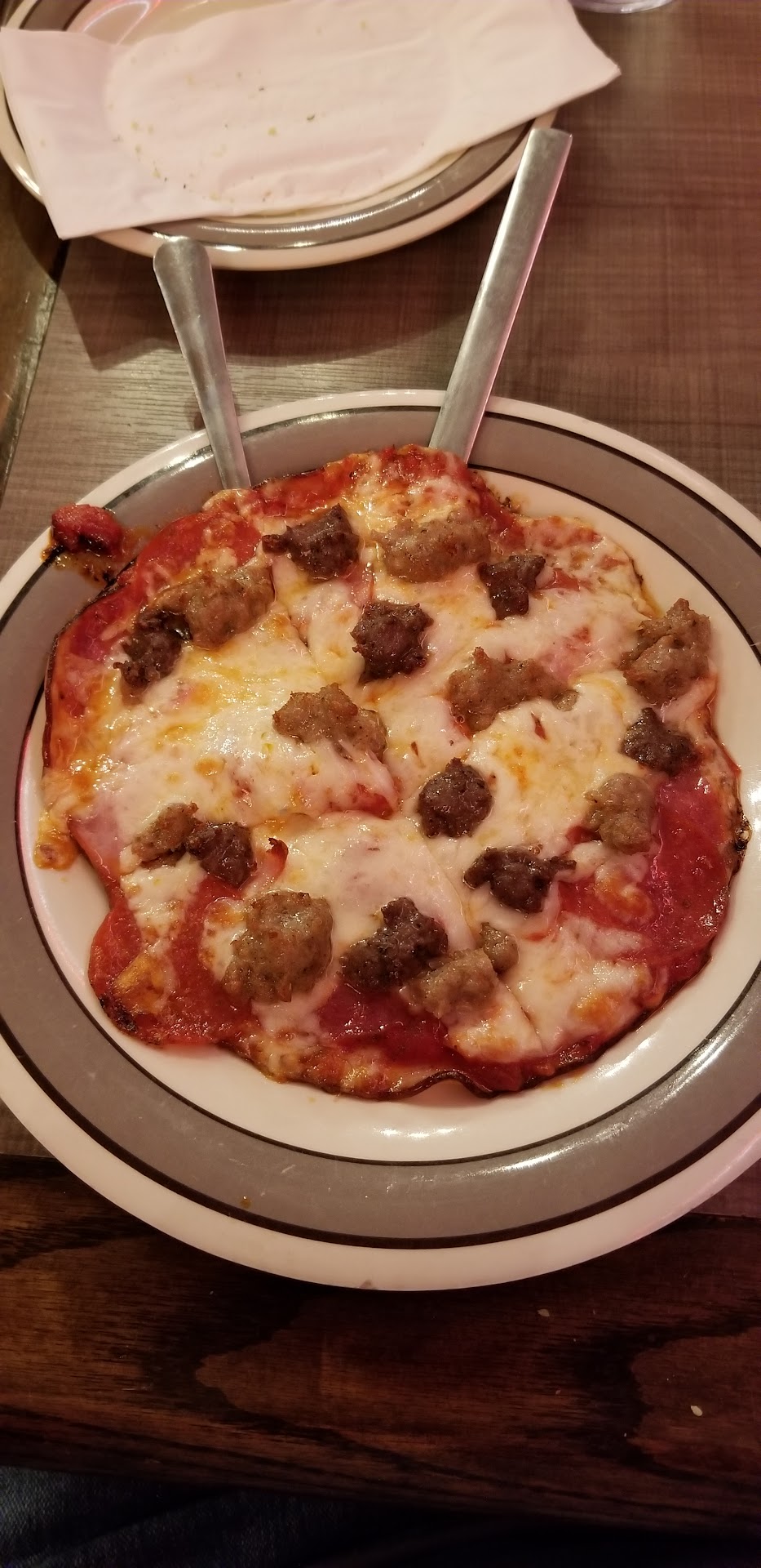 Why plastic utensils all of a sudden?đ´I understand itâs convenient to cut down on dishwashing, but does it really require that much more time or energy or manpowerđŞđź to clean the utensils? This is something I would naturally expect at a counter-service, fast food establishment, but not at a nicer place⨠like The Pizza Factory. Additionally, itâs got to be quite a bit more expensiveđ¸ to be constantly replacing the plastic utensils. Not to mention itâs near impossible to cut a calzone with a plastic fork and knife. đ