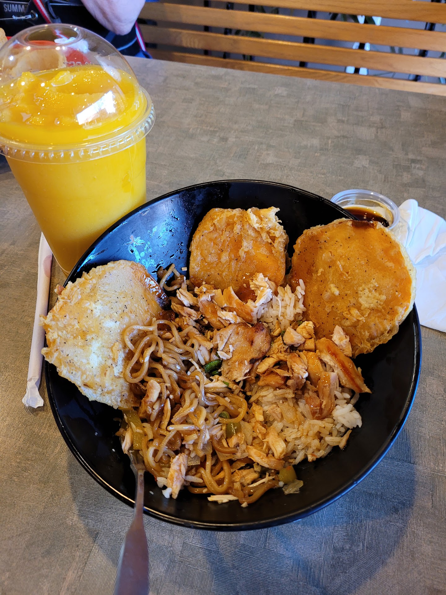 Read moreWe dined in I got a teriyaki bowl it was delicious!!! I NEVER Never finish all my meals at restaurants however ever this was an exception it was so good. They put teriyaki on it, but they also put enough mixtures of tiny peppers and onions to make it have A special flavor That was Terryaki with a little spice-not too much. I had sweet potato tempura. I was with family so I had a non-alcoholic mango 🥭 slushy I would've gone there just for the drink alone it was huge and delicious 😋, my mom got a Pina Colada She could have had mixed with something else- as could have I, but we both chose to have it by itself. It had beautiful Hawaiian music while we ate definitely made those of us who had been miss Hawaii, and memories of hula lessons from childhood came back hearing one of the songs 🎵. They obviously cook your meal when you order, I had a choice between pork, which is what they show on the menu I believe, chicken or I think shrimp chose chicken white rice there's a bit of noodles under the meat and they give the choice of grilled or battered. I chose grilled and it was obvious it was...u could taste it. Courteous staff and clean environment. Kinda hard to find a little place along a strip. They could probably be so much bigger, as long as people are willing to give it a chance eat tempura (Deep fried veggies or shrimp) etc. Step outta the comfort meat and...