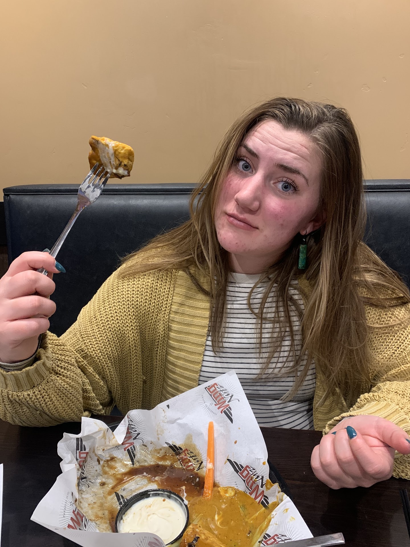 Read moreHyped up reviews from locals led us to Wing Nutz. We were sorely disappointed. Capacity was about 1/3. Walking in the door the atmosphere seemed fun and chill, just what we hoped to find in a sports bar. We sat at the bar. Unfortunately, the wait staff/bartenders were extremely slow to even acknowledge our arrival. When we were finally greeted, our service felt rushed, our bartender was very short with us yet there seemed to be plenty of time for all the staff to laugh and banter with each other. We ordered margaritas with our meals. When the drinks arrived the bt tossed a small bag of pretzels and a small bag of peanuts on the counter next to our drinks. Our food arrived, which was decent. Not amazing or even hot. Just decent. We ordered another round of drinks and began to eat our meal. Along with the next set of drinks came one more bag of pretzels. When we received the bill (which we requested after waiting a long while) we noticed we had been charged $16 for the "snacks" provided with our alcoholic beverages. ($4/snack, 1 with each drink. We were given 3 total) When asked about the charge the bt stated it is required they provide something to eat with every drink. (Remember we ordered a meal WITH our 1st round of drinks). She would not remove the charge. My friend stated, "If you are going ro follow the rules and throw a $4 charge on top of every drink, you should probably give us a snack with each drink. We ordered 4 drinks an got 3 snacks." She gave him a rice crispy treat. Yeah, we will never return. It doesn't matter how cool or fun a business seems, when customers are treated poorly it reflects as an ugly experience...