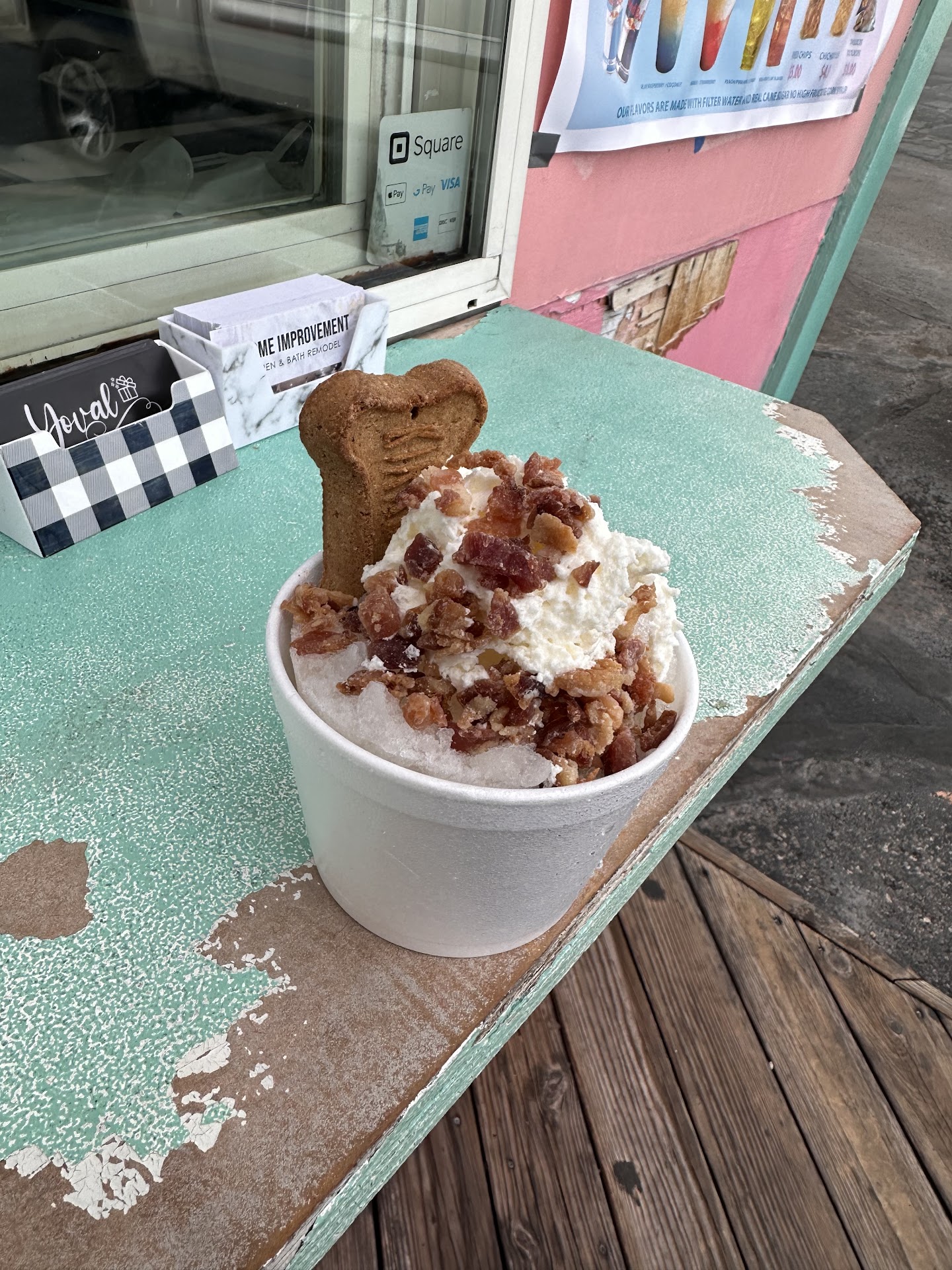 This is the best shaved ice I’ve ever had! It’s got the perfect crunch and they use a generous amount of syrup. They have around 56 different flavors. Only about 6 or so sugar free options. They use filtered water and natural sugar syrups, no high fructose corn syrup. I personally would recommend the Aloha Hawaii one made with guava, pineapple and strawberry or the Nectarine one. With the hot temps and inexpensive cost, you should stop over and try one! They can be addicting. 🤤The largest size is $5.00 so it’s very reasonable. See my photo for the full menu (July 2023)