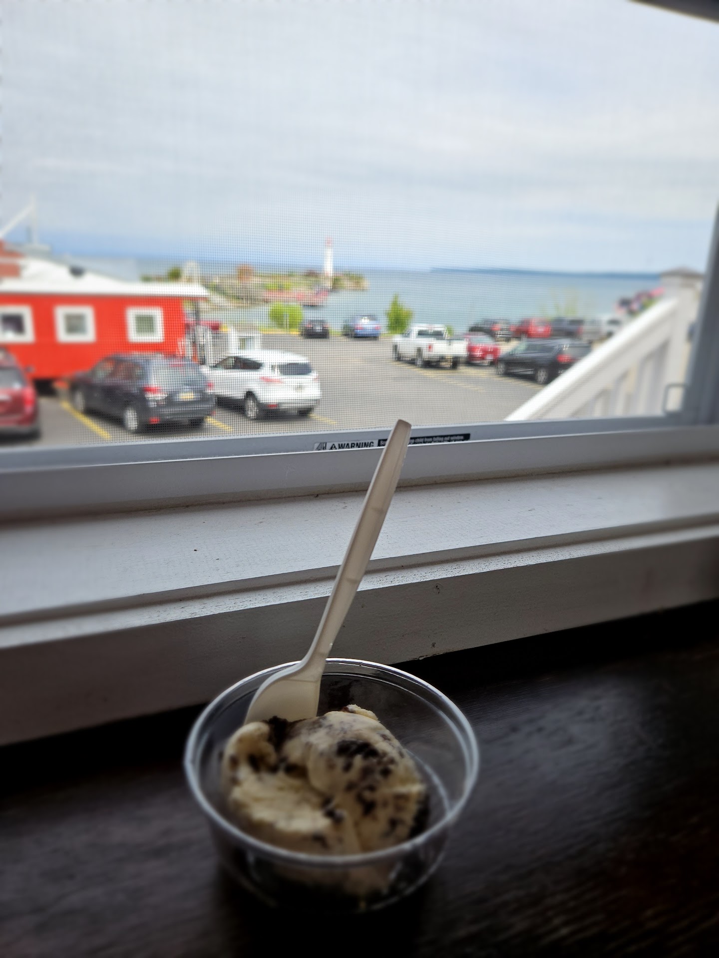 The Icecream itself was top notch, very flavorful and not to hard not to soft. Tried the Cookies and Creme, Chocolate Chip Cookie Dough, Peanutbutter Mackinaw Island Fudge, and Moosetracks. None of them disappointed!