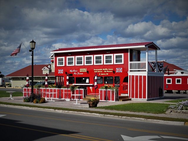 The double decker bus is certainly eye-catching, but the ice cream was terrible. I ordered a soft serve turtle sundae and my wife got a black cherry hard ice cream w/ waffle cone. The sundae was awful. The whip cream was runny and dripping before the server even gave it to me. There was almost no caramel, no chocolate whatsoever, tons of pecans on one side of the dish, and the ice cream was melting. I took a couple of bites and ended up throwing the rest away. My wife said that her cone was not very good. The quality of the ice cream seemed supbar, and it just didn't have much flavor. She ended up ditching most of the ice cream and just eating the waffle cone. Maybe it was just a bad night, but we certainly won't be going back. Hopefully your experience is better than ours.