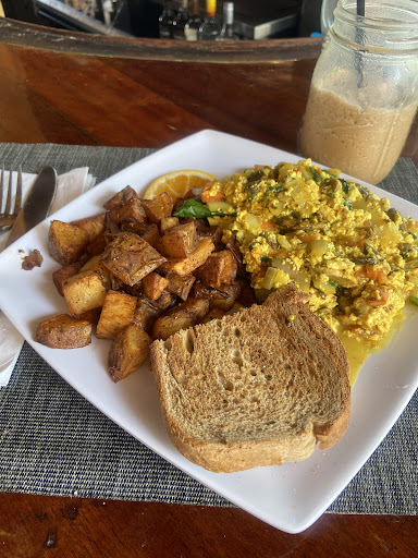 Read moreWhile on vacation on St. Thomas my hubby and I decided to take the car barge for a day trip to St. John. We left early so we could spend the entire day in St. John and not feel too rushed which meant we were more than ready for breakfast when we got to St. John. I had Cruz Bay Landing in my sights because I saw that they had a vegan breakfast scramble. Parking was a little tough to find in the Cruz Bay Area but after driving past the restaurant a few times and finally finding a spot we walked a short distance to Cruz Bay Landing. They were pretty busy by the time we got there but we were able to get two seats at the bar which was totally fine by us because we ended up meeting someone who had just moved to St. John and we had a very nice conversation with him the entire time!! Now let’s talk about that food! Omg the vegan scramble was delish (Although a bit runny so maybe they didn’t press the tofu enough? But still good) and my husband got a Benny with an almond milk mocha latte. Also I was stoked to get a frozen almond milk chai latte and have marble rye toast! It’s not my fave toast, (sourdough is) but it’s definitely next on the list. The service was great too! Everyone was very friendly. We had a lovely time and definitely plan to return to Cruz Bay Landing whenever we vacation again...