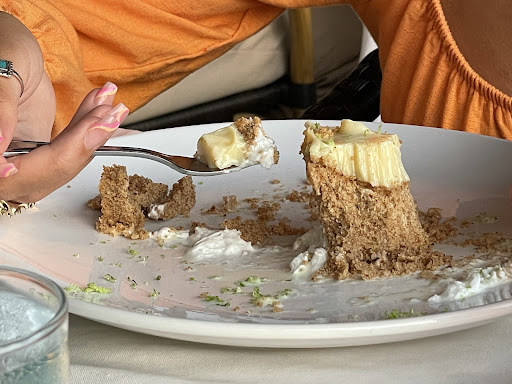 Lastly, an interesting variation of “key lime cheesecake”, which actually wasn’t cheesecake at all, but had a flavorful key lime pie filling (which is actually what I wanted before she called it “cheesecake”). That is, the little bit that was sitting on top of an incredibly disproportionate stack of graham crust that was quick to get us glances from nearby tables as we struggled to break it down, striking the innocent plate underneath with each blow from our dessert forks.
