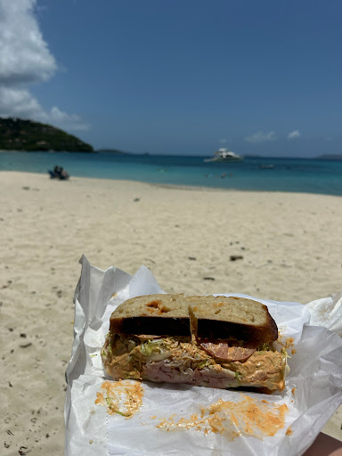 We came by to grab sandwiches and pasta salad for the beach one day and they were AMAZING!!! We all got the #10 and the pasta salad, we had four sandwiches between five people and were able to eat them for two beach days, they are huge. Great prices as well, I believe it was around $60 out the door. In the VI, that is a great deal, especially since we had almost two full meals each. The quality of the sandwiches is fantastic and the bread is amazing. It's tucked away in the old lumberyard by St. John Speakeasy. My only regret is I didn't go there on my first day so we could have gone more than once. Tip....be sure to check their Instagram daily because sometimes they open later due to catering events or close early if they run out of break. The owners are super friendly and nice. We can't wait to go back again on...