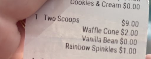 Stopped by around 7:30pm or so on Wednesday, May 22 to try some of their ice cream that seemed to have such positive reviews. We asked the young lady working if the fruit based ice creams had real fruit in them but she didnāt seem to know what the question meant so we moved on. We have younger children that canāt eat adult sized portions of ice cream so when she told me that there were two scoops of ice cream in each portion sold, I asked if we could separate those into single scoop smaller cups instead of one full serving with two scoops. She said yes, that would be no problem. So we went ahead and ordered 3 ice creams but told her to split them into 2 cups each so that we would each have smaller servings and then we ordered 2 plane waffle cones so we could all enjoy some of the cones that they make in house. When I went to pay for the ice cream the bill seemed too high... when I asked for clarification she told me that she charged me for 4 kids scoops (not even something we had discussed) and 2 adult scoops along with the 2 plane waffle cones. When I said, āso you are charging me for 2 2 scoop adult servings even though we only got one scoop each?ā, she said āyesā. Not wanting to cause a scene I just paid the extra money and moved along. Then, my wife let me know that one of the things we ordered was the wrong flavor. When she tried to go back and get the lady working to fix the problem the person at the store told her that she already had the correct flavor and didnāt do anything about it. I would only give this place a single star but the waffle cones were great. Ice cream was just marginal and getting ripped off really soured the entire experience. Truly disappointed since we are ice cream lovers and had been looking forward to trying a local place that advertises making their own ice cream! Most assuredly will not return and would not recommend to others either based on this extremely poor...