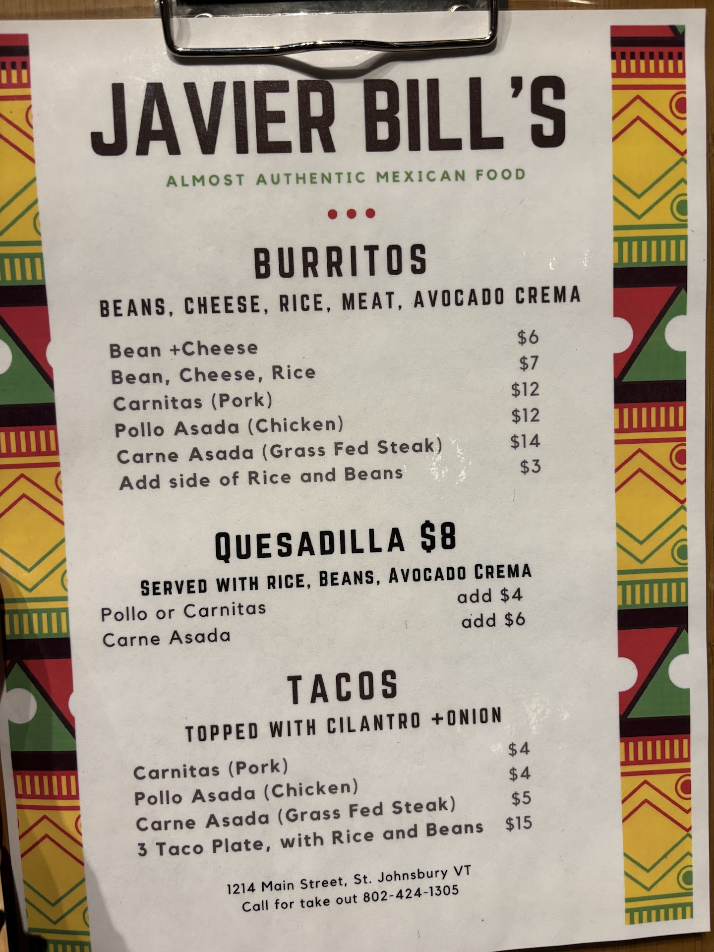 Ā Ā Ā Read moreMy wife and I were in St. Johnsbury and decided to stop for lunch. We both got carnitas tacos, and they were the best tacos we've found since moving away from Texas. The tacos themselves were generously filled. I used to be able to put away four at the taquerias back in Texas when I was hungry, but here I was full after just two. The carnitas were rich and fatty without being greasy, with some nice browned bits mixed in. The tortillas tasted fresh, and both the green and spicy salsas were full of flavor. They had a good selection of Jarritos and beers, but unfortunately were out of michelada mix. We'll definitely be back next time...