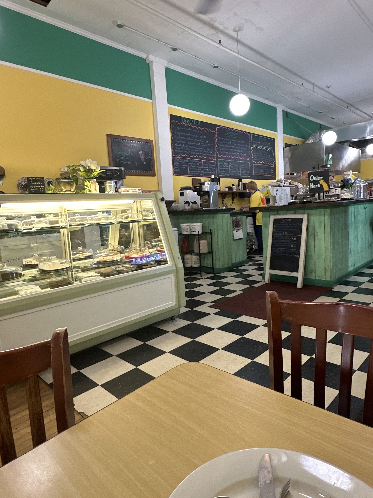 Decided to take one of my best friends to St. Johnsbury for his birthday weekend-he showed me the town online and told me about Dog Mountain, so, of course I booked a 5 day trip to the historic VT town! Well, we both love breakfast. I always felt I could eat breakfast any time for any reason so whenever I go anywhere, my first search is âwhere to eat breakfast near meâ. We tried another place the first dayâŚbut the second day we went to The Kitchen Counter. It was the best decision for breakfast and the first morning was all I needed to know that this little cafe would steal my pancake, egg and bacon filled heart! I ordered the eggs Benedict with tomato and spinach (I try the Eggs Benny at every breakfast place) and I was not disappointed. Coffee is self serve and free pours. If you sit on the stools at the counter, the servers and chefs are right in front of you serving and making your food while conversation fills the room. The busier it seems, the better this well-oiled machine runs. I decided I would return for the remainder of our trip.