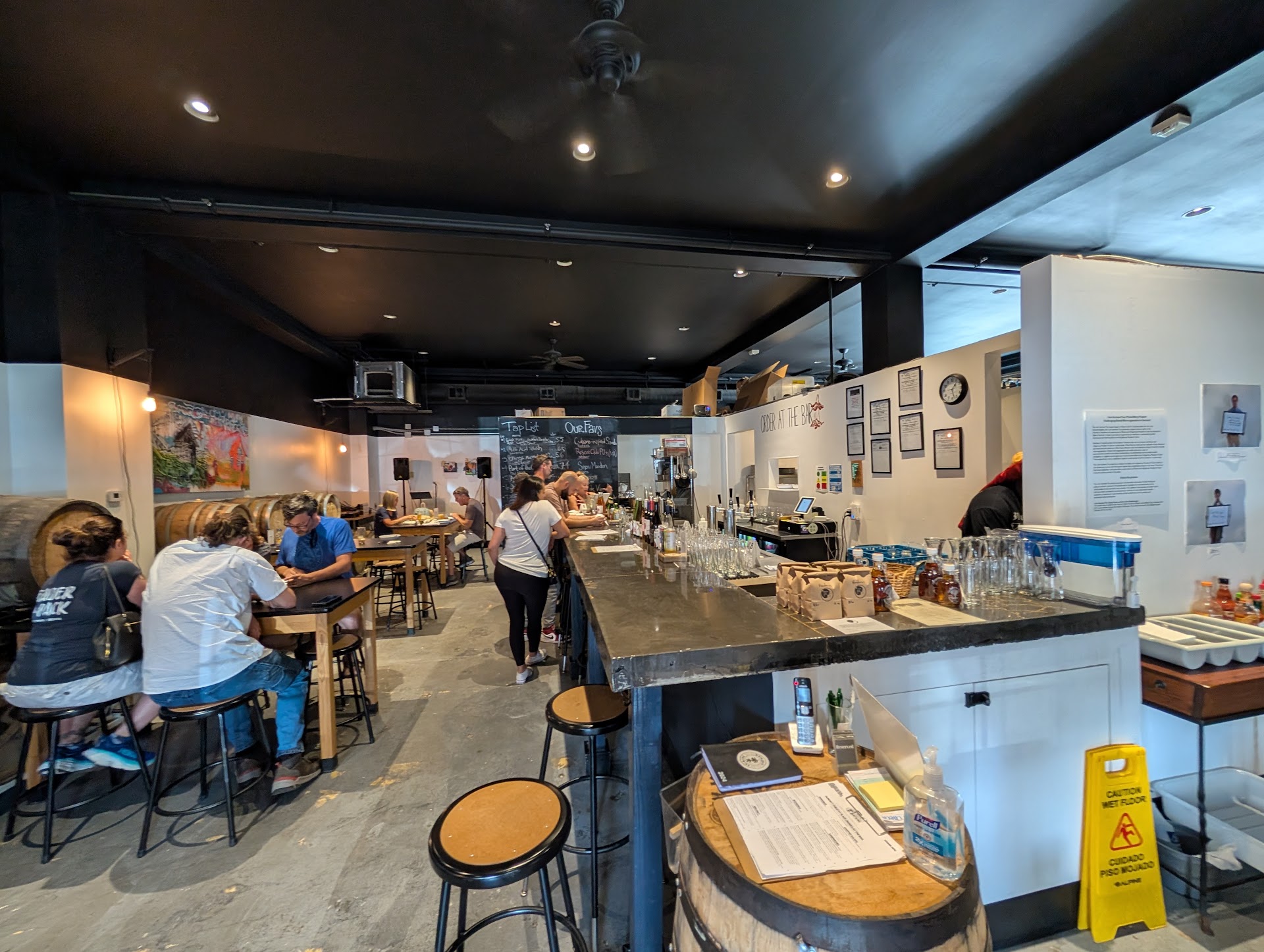 On our visit to Whirligig we ordered two sandwiches, the smoked chicken chipotle and the smoked pork chipotle, and a couple Ciders. Order and payment at Whirligig is taken at the bar and you take a number to your seat where the food is delivered to you once it's complete. There is some limited inside seating with a good number of tables outdoors under a covered patio.