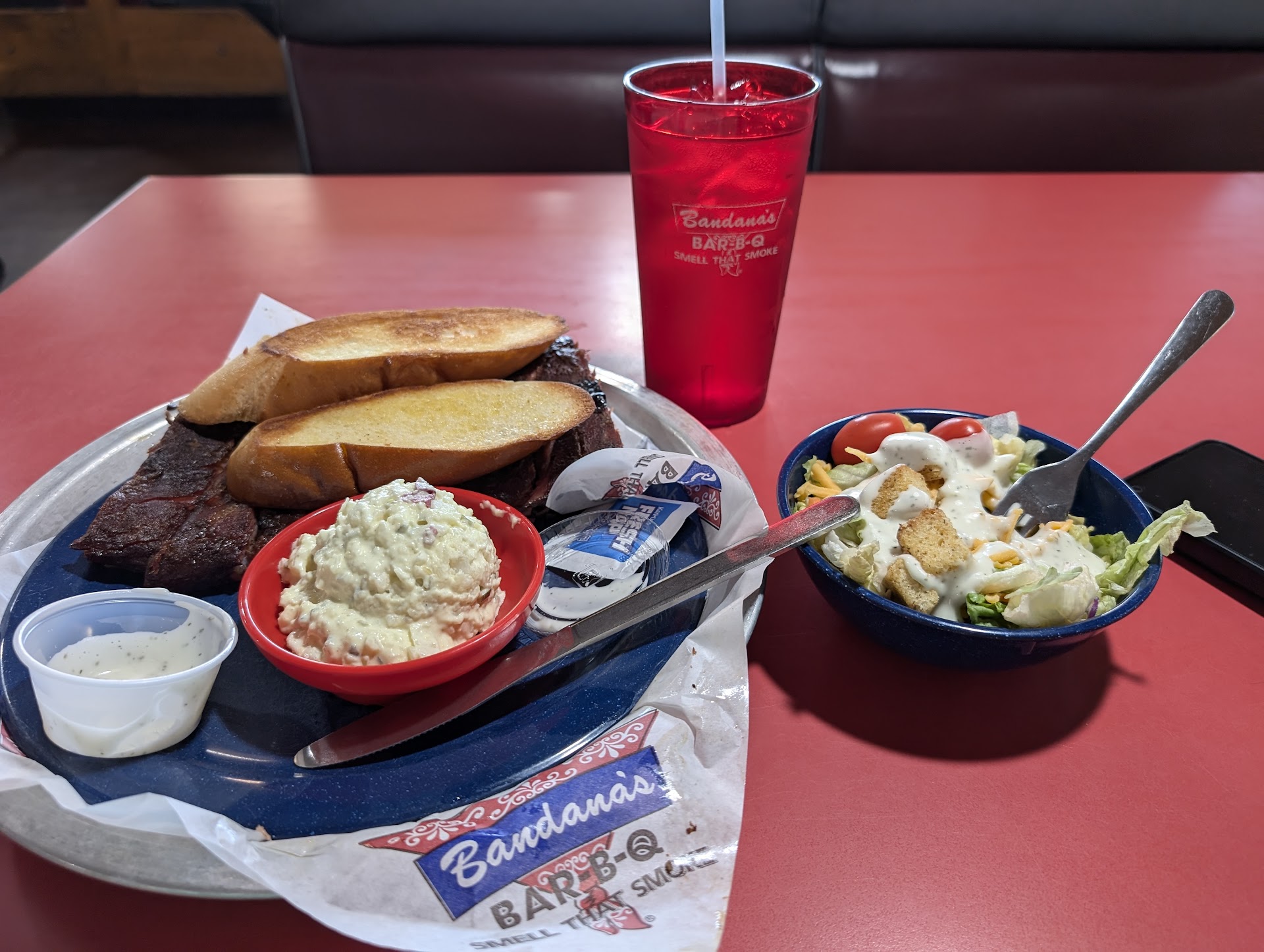 Read moreFrankly it's to bad the stars , don't go in the reverse . But we ate there in the middle of the day. The first thing I found odd was the fact that their motto was Smell That Smoke , but we couldn't smell any smoke when we walked up to the front door or sat down. Service was great , and I don't blame the waitress . But my first question was . " Is the food smoked daily and is it fresh . ? " " Oh Yes ! " was her reply. Not the case at all . food wasn't fresh nor was it prepared that day . And in fact lacked any real smoke flavor at all . We spoke the manager and he did offer to comp the meal, which we declined , and as well offered to get us fresh food. My question was why didn't that happen when we ordered and how can it be fresh if your smokers aren't even going ? Wish I could've up loaded my pics..but we did drive around back and the smoker weren't going and they barely had any wood . If you smoke fresh daily and this was in the middle of the week why wouldn't you have a stack of wood , not to mention your words and claim..And that is " everything is smoked daily and cut to order right off the smokers ". So my recommendations are , like most chain places is the quality goes out the window , so don't waste your time or money , look for a different BBQ...