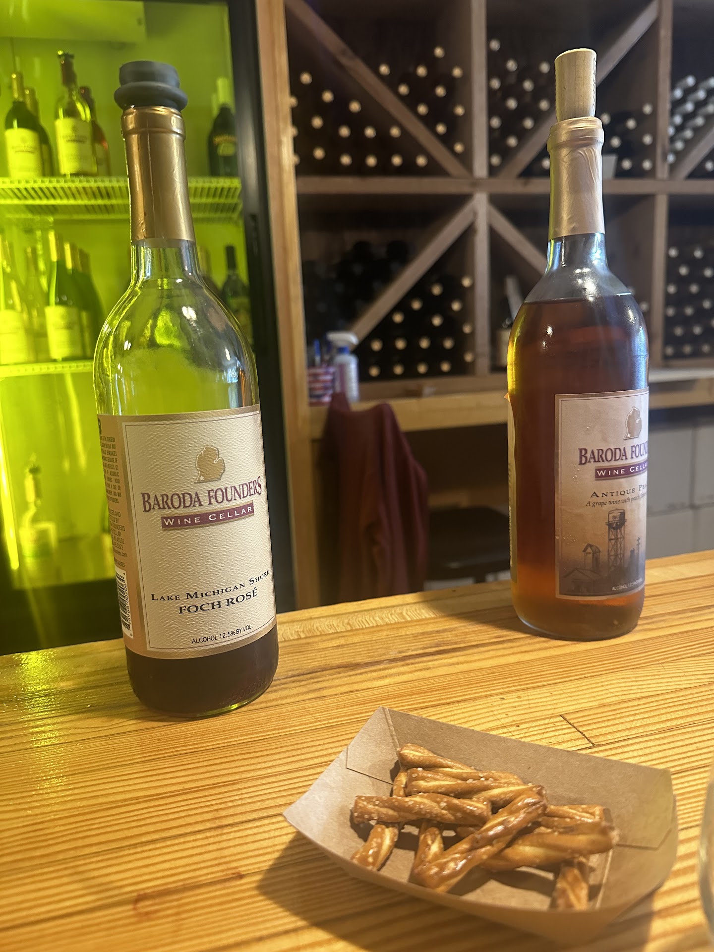 The wine was very good! Unfortunately our server was not! When we came in there was 1 server behind the counter, her name was Emma, we walked up to the counter, my husband and I got a bottle, the couple we were with got a tasting. Emma spent most of her time on her phone or talking with the other couple at the end of the counter, our friends' glasses were empty for a long period of time. Eventually our friends ordered a bottle then without saying a word she put our checks in front of us. When I asked to plz sample the peach wine because I wanted to possibly take a bottle home she told me she wasn't serving anymore and then proceeded to serve a table of newcomers that had walked in! We won't...