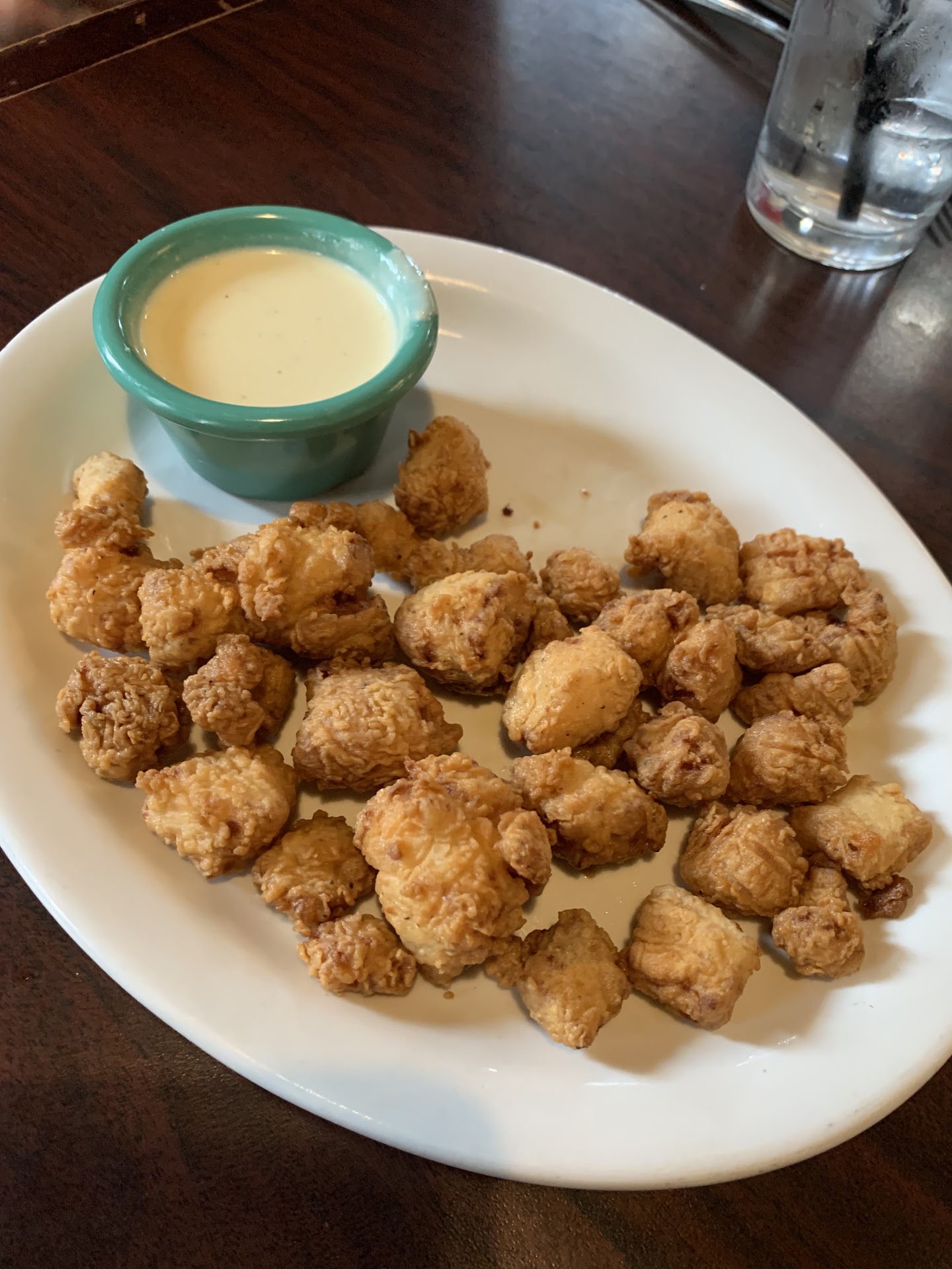 The other couple arrived and we put in our drink and appetizer orders. The table shared a plate of deep fried crocodile bites (see photo). They were $9 and just okay, not flavorful or unique. They were searched with a little dish of what appeared to be thin ranch dressing which added a bit of flavor.