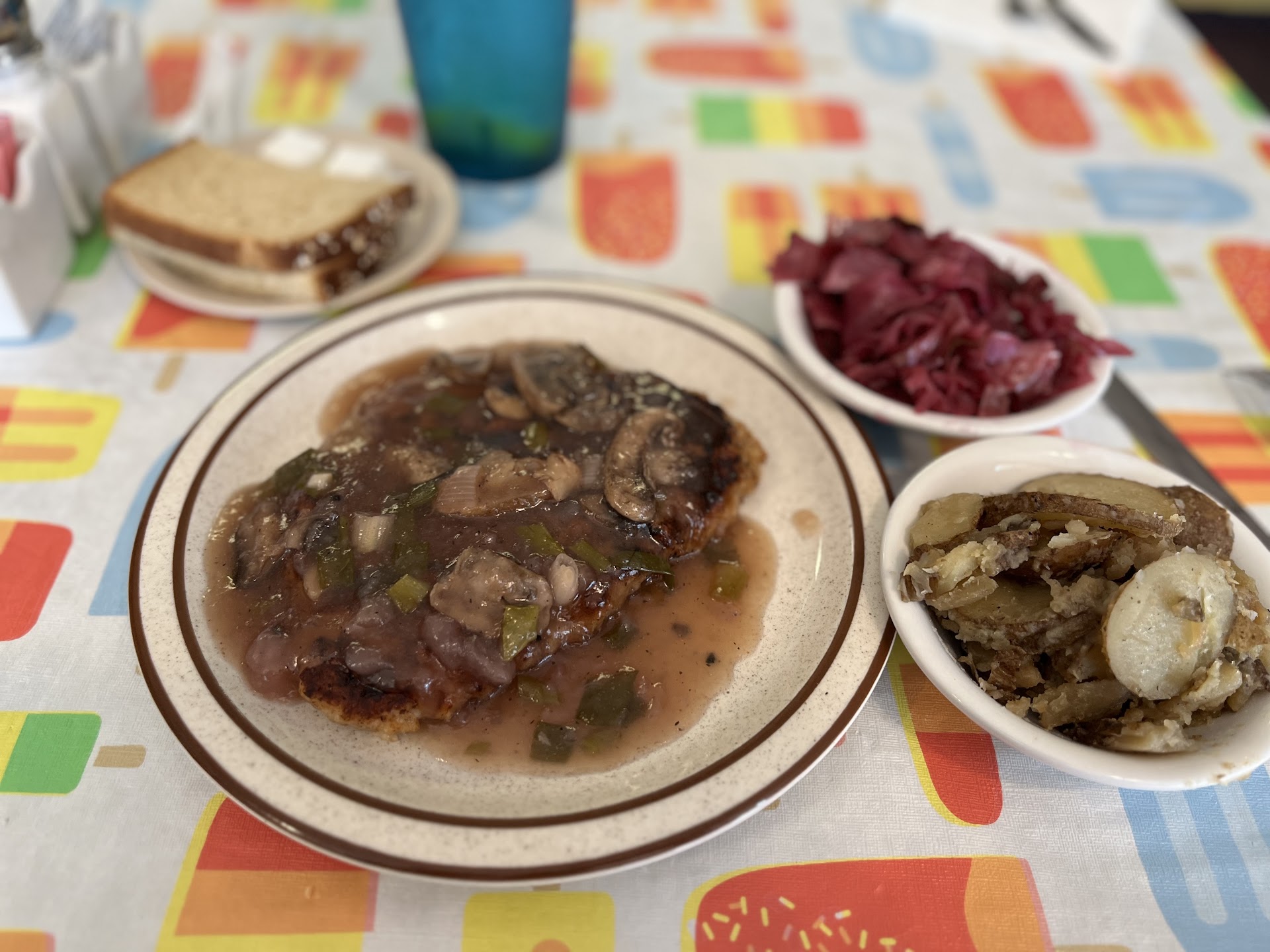 Read moreGreat little German restaurant. Feels like you stepped back in time. Very intimate dining with very authentic food. I had the Variety Plate which was one cabbage roll, one Polish sausage with coarse ground mustard, one Pierogi smothered in grilled crispy onions. Come with two sides, I chose hot German Potato Salad ( incredible!) and Red Cabbage which was also incredible. I don’t often rave about side dishes but these were great. All the food was fantastic and delicious. Service was friendly and excellent. Owner came out to see if we were satisfied; we were! Deserts looked really good but I was too full from the meal to indulge. Definitely on my list to eat at next time I return. It is definitely “Food Worth...