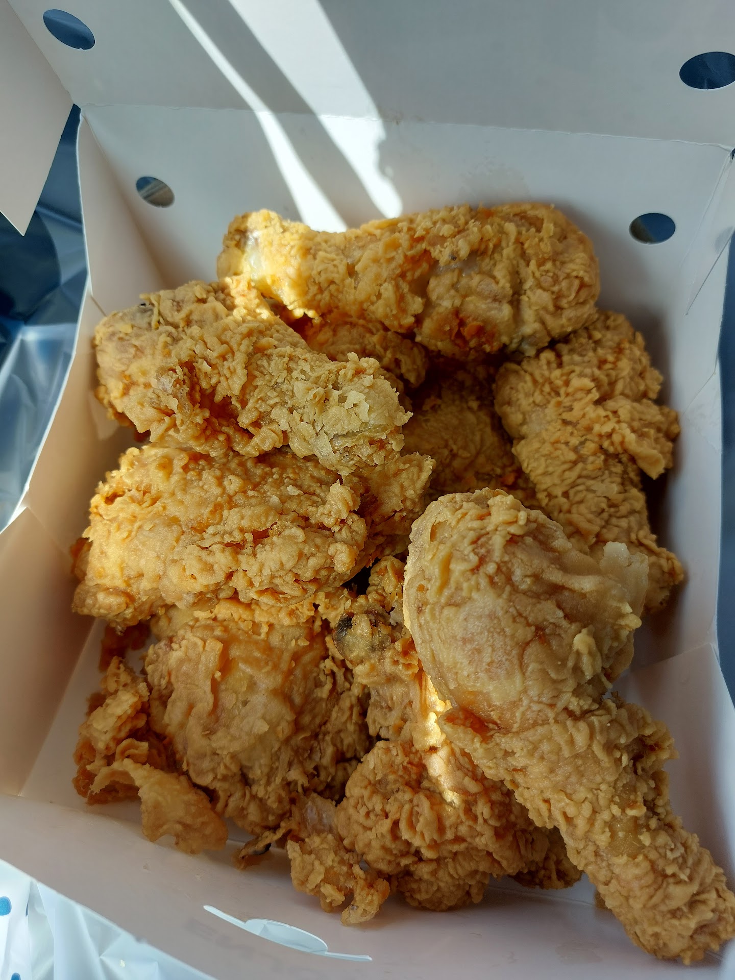 Ā Ā Ā Read moreBought 10 piece chicken dinner and shrimp dinner. Ate the a few shrimp and 1 piece of chicken and started feeling a little upset stomach about 1/2 way through 1st piece of chicken. My GF ate 2 pieces of chicken and started complaining about her 2nd piece of chicken and threw it in the box. We put it in the refrigerator and next day took one box inside and all I could smell the putrid smell X10 that I tasted the night before. I ask for a refund for the 10 piece chicken only. The manager opened the box and ask the problem. He counted 6 pieces of uneaten chicken, 2 pieces with a bite or 2 out of them I told him I just wanted a refund for the chicken and not worry about the shrimp dinner and he said " I will give you 12 piece box or $6 for the 6 pieces that don't have a bites out of them" I refused the 12 piece box, didn't think it fair but took my 6 dollar refund and left because I couldn't...