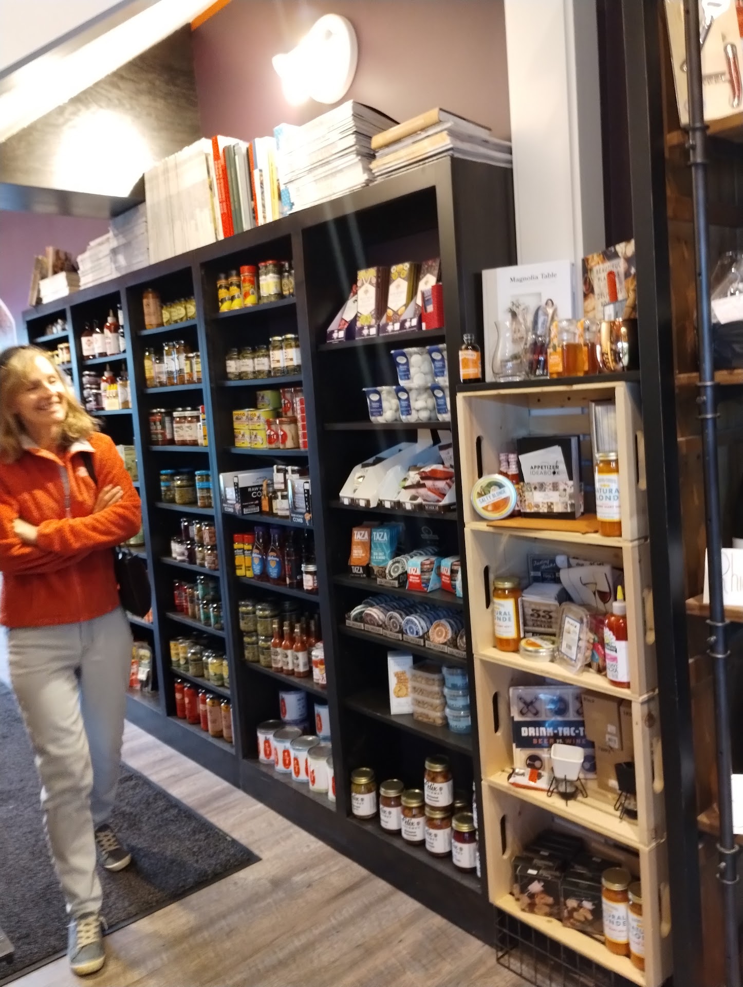 It was my first time. I've seen the cute cafe before in passing but this was my first time dinning. From the funny sign outside to the moment I sent foot in the door, I got a relaxing vibe and it totally seemed like my kind of place. The walls covered with things you can buy, saved alcohols, cheese sections? And that's all before you remotely step into the cafe. Going through the arch into the next part of the store, even while I was still looking, two amazing employees saw that we were about to step inside and my mom and I were warmly greeted and asked if they could help us.