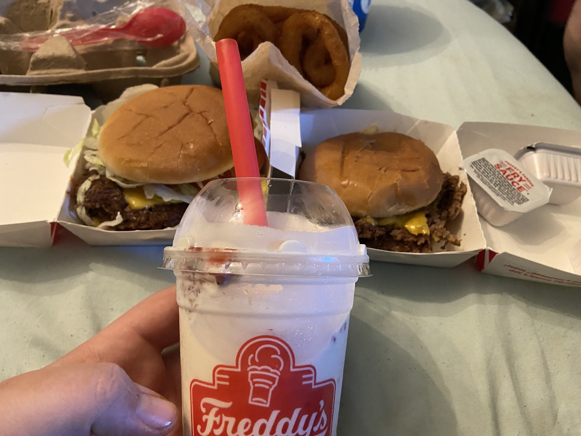 To start out our visit was great in the beginning. We had a young girl probably around 17 or 18 helping us. She was sweet and attentive. She even helped my son pick out his shake because he couldnât figure it out. He loves it by the way so thanks for that. The problem wasnât the food however. Our food was ready for us to take but our shakes were not some of the people were standing around talking while others like the young girl were trying to work. Either way this young lady noticed we had our food and not our shake/concrete. She stopped what she was doing proceeded to grab two cups which our order consist of and began to make our shakes, her boss or whoever the lady was, came over and instead of asking what order she was working on started barking orders at her. This young lady waited for one of them to do their job and when she noticed we stood around after having our food for about two minutes she decided to help. The older lady should have been helping the young girl not barking orders at her like she was her lap dog. The older lady messed up the younger girls flow and then proceeded to raise her voice at the young girl as if it was only her fault the order got messed up. Take responsibility for your part maâam.To the young lady I just want to say thank you for being attentive and noticing us. You were great...