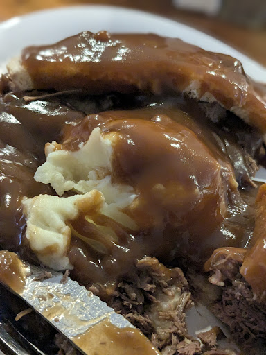 I ordered a hot beef sandwich, my husband had the hot tenderloin, and my son had a chicken tender basket. Our food was hot and portions were very good for the pricing. The gravy was thick and delicious for my hot beef.