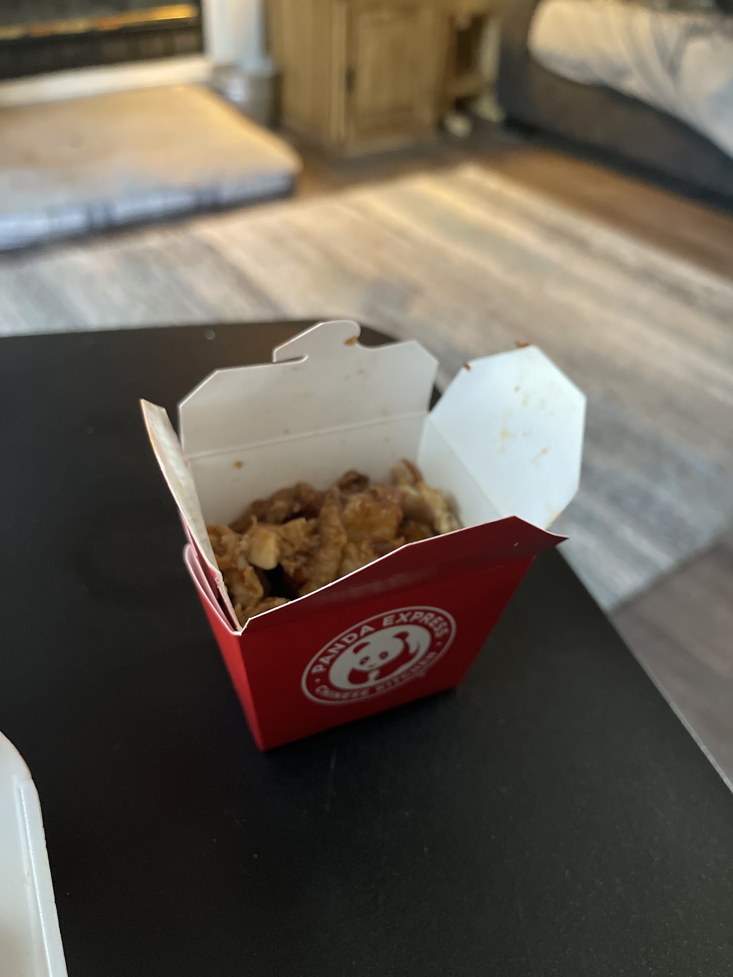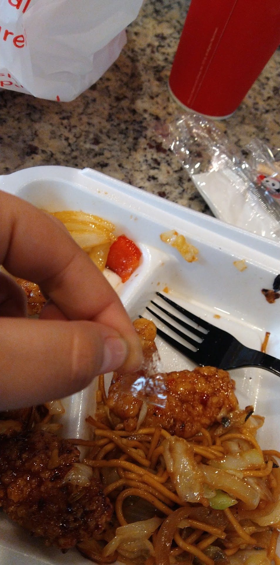 Orange chicken is so darn crunchy, like the meat, was cooked out of it. Thrown away.