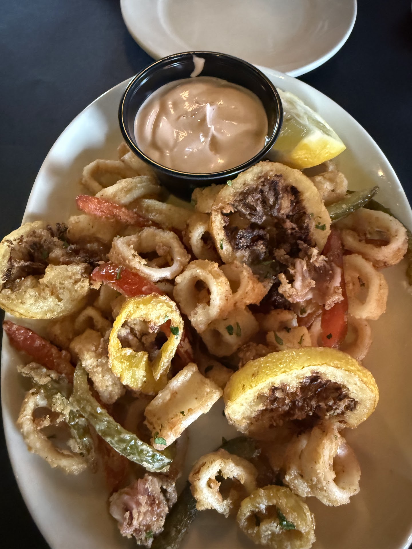 Read moreI wish there was a 1/2 point on the rating scale. It would be a 4.5 overall for me. Came here today, Saturday, at 4:30 pm so it wasn’t busy yet (it got quite busy after dinner). Hostess was very friendly and so was our server. I believe his name’s Christian. Everything was good, with the exception of the appetizer, Calamari breading was light enough, but it was too salty, and the calamari itself was a tad overcooked. Pretty much every where we go, I try to order calamari because I really miss a proper Italian calamari such as the ones we had when we lived in Italy. Unfortunately, it is very rare to find a perfectly cooked calamari. The calamari here is also unique and a welcome change to the usual as it had fried lemon slices, red and green bell peppers, and banana peppers. It came with a dipping sauce, but I still prefer just a squeeze of fresh lemon juice.