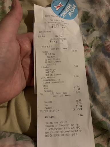 Read moreI was extremely surprised by my recent visit. Everyone that I spoke to was very courteous and accommodating. My order was read back to me as well as visually displayed. While waiting on my order, a gentleman stopped by with a tray and asked me if I would like any sauces and explained to me what the different sauces were. A couple of minutes later, a lady by the name of Jasmine stopped out to deliver my order, again confirming what I had ordered. All of the food that was brought to me was freshly cooked and nicely prepared. In no way was I expecting this to be at a fast food restaurant. I hope this is something that Sonic continues and that other fast food...