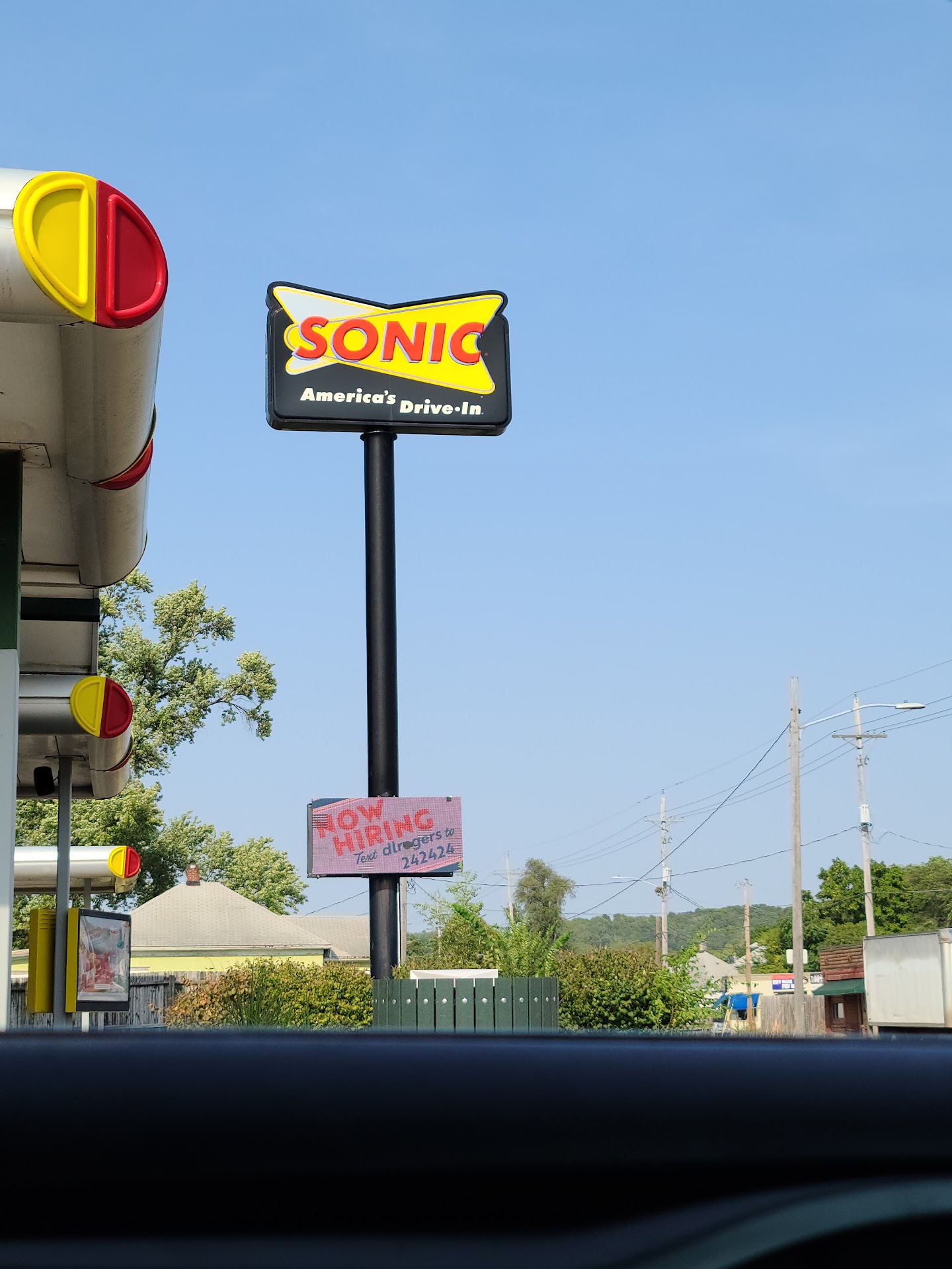 Read moreI will probably not be back to this sonic, I spend a lot of money on drinks for my family from this place and tonight we went through and asked for two small dr.peppers a rt44 sweet tea and a rt44 unsweetened tea with lemon and peach first the order was short a drink and one of the rt44 drinks were made into a small then when the order was corrected we got a rt44 sweet tea with lemon and a rt44 unsweetened tea with peach not what we asked for so then they fix one tea and make it an actual sweet tea but the peach lemon unsweetened tea was still wrong. There was no sorry no receipt given the car hop handed us the sweet tea...