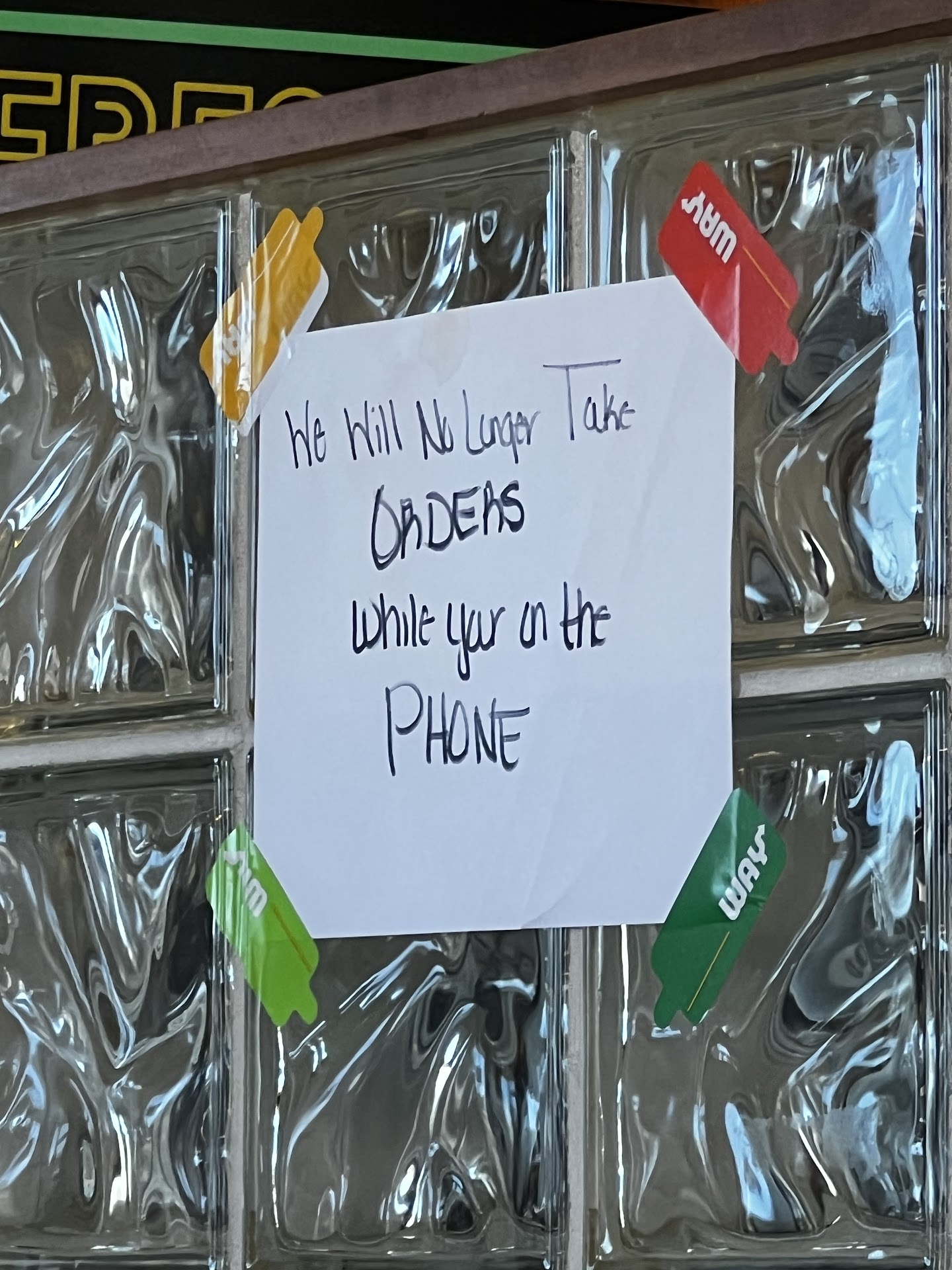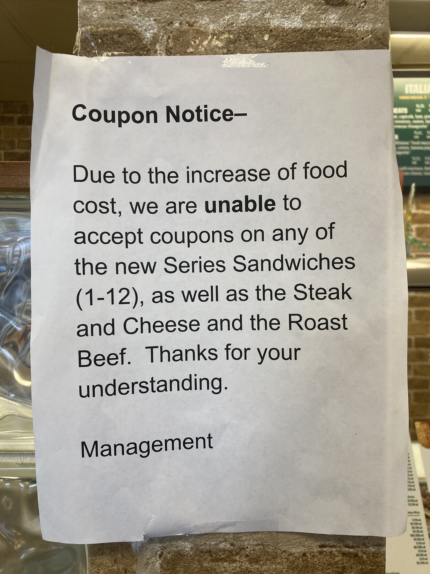 During his rant, he was so distracted and angry that he started carelessly throwing food around behind the counter, including my sandwich, which he put in the wrong bag. The customer he was berating had to open the bag, check the order, and hand it back to me. He even threw multiple extra sandwiches into her bag without noticing.