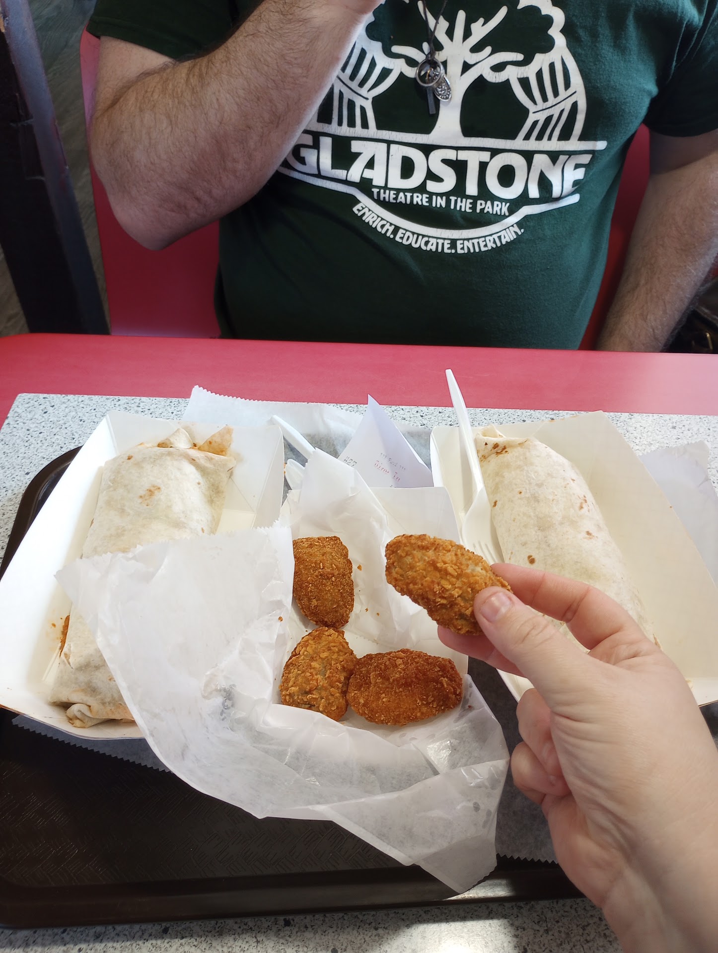Normally i have a strong stomach and nothing bothers me except the foods i am sensitive to like dairy or soy. I have followed a strict diet for many, many years so i know when it was something i ate at a restaurant that affected me. It also helps when i find loose pieces of cheese in my taco wrapper. Sorry for the rambling review, i am livid. I'm really not looking forward to doing nothing all weekend and neglecting all the chores i need done, thanks to a...
