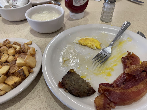 Read moreWent for breakfast 7/22/17 at 9-ish. Stepped into the waiting area with my mother, she went to sit and wait while they were taking care of a parrty of 6-7 people. While that was taking place we were there all alone for 1 minute. When the 2 greeters (both young, 1 was heavier) came back a fellow came in with his wife came in and they got seated first. When the greeter came back they went back to the station and started talking and their venture from the night before, leaving us to wait like we weren't there. I looked at my mother and she looked at me like "WHAT THE HELL". I looked at her and said "LETS GO WERE DONE HERE" The 2 girls ignored us and just kept talking. I turned on my way out and said "I GUESS WE CAN"T GET WAITED ON HERE" loud enough for them to hear it and walked out the door to go IHOP. A friend of mine has had similar experiences with service while dining there. Twice he made it to a table but, that is as far as it went. He was never waited on, so he got up and left. He has already told me that he won't be back and neither will I. I hope that you hired help runs your buisness into the ground. "YOU DESERVE...