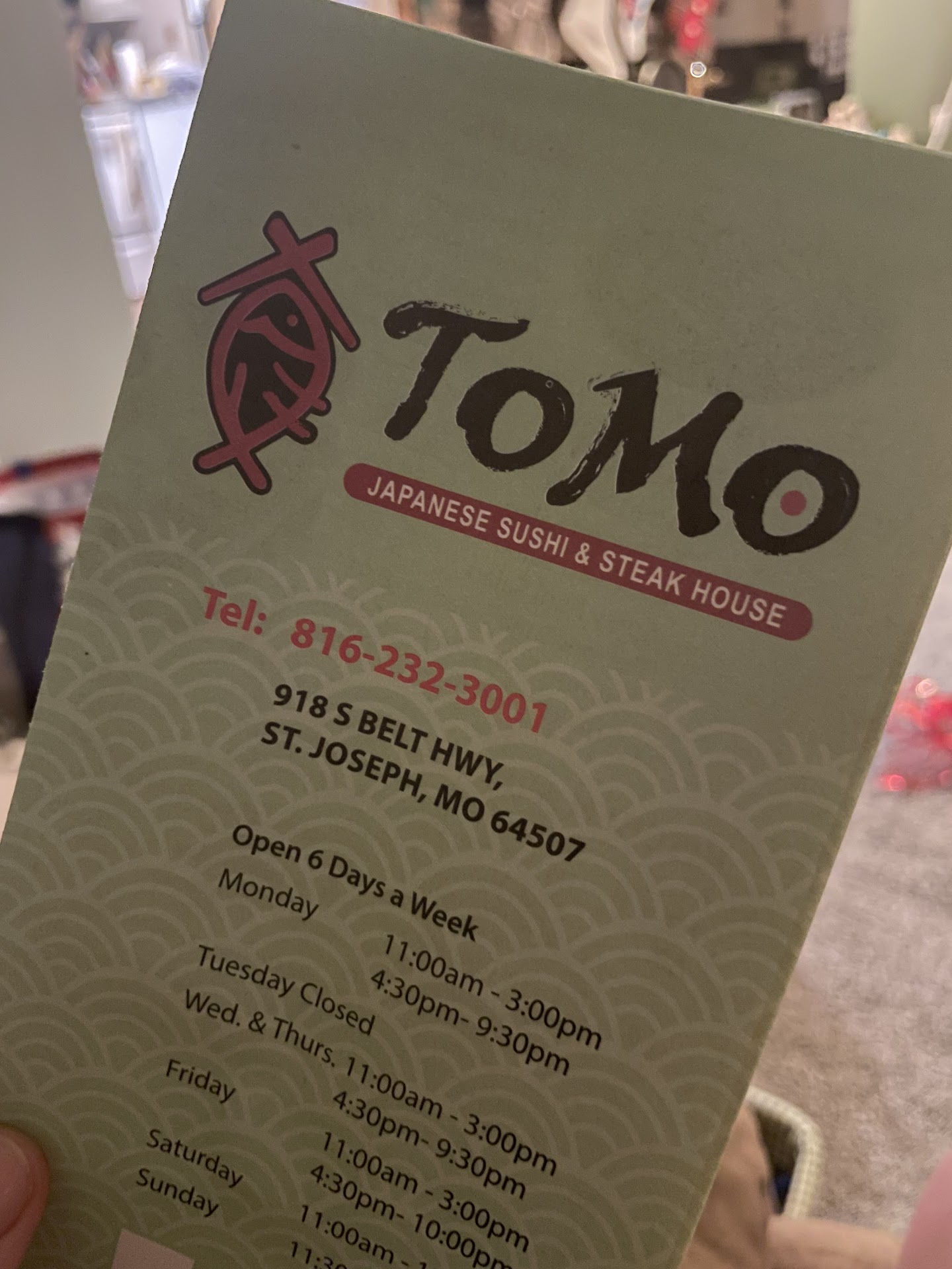 Read moreFirst off this was my Birthday Celebration!My Daughter and I were super excited to try TOMO! My overall rating is mixed! Our waiter was in training. And a super nice Young man. The owner seemed very frustrated, And scolding the young waiter in front of the customers. Several times and loudly. In turn set the tone for the experience. Which to me the energy was bad after that. Our order was out of sync. Sushi got served first. But appetizers last. Orders were mixed up. And why wouldn’t they be. With someone projecting anger at you while your learning. The Sushi was pretty Good! But was given minimal sauce and wasabi. The Miso soup was very good. As well as the Sesame salad. The flavor was very good. The fried rice tasted like jasmine rice walked with soy and a few other flavors. Great taste but could of used some veggies in the mix. The Katsu was just a fried piece of Chicken and pork. It was ok. I love Katsu and this was below par. As well as the Katsu sauce. It tasted a little steak saucy. The Gyoza was really good cooked perfect. The teriyaki chicken was pretty good. Parts of the order were really hot and some had sat a pinch. So consistency was not on par. Overall I would give a 50/50 rating for now. I would come back for another visit to give TOMO another try. But at that price. They should over deliver especially for a Birthday. When the customer is trying to spend some cash at your...