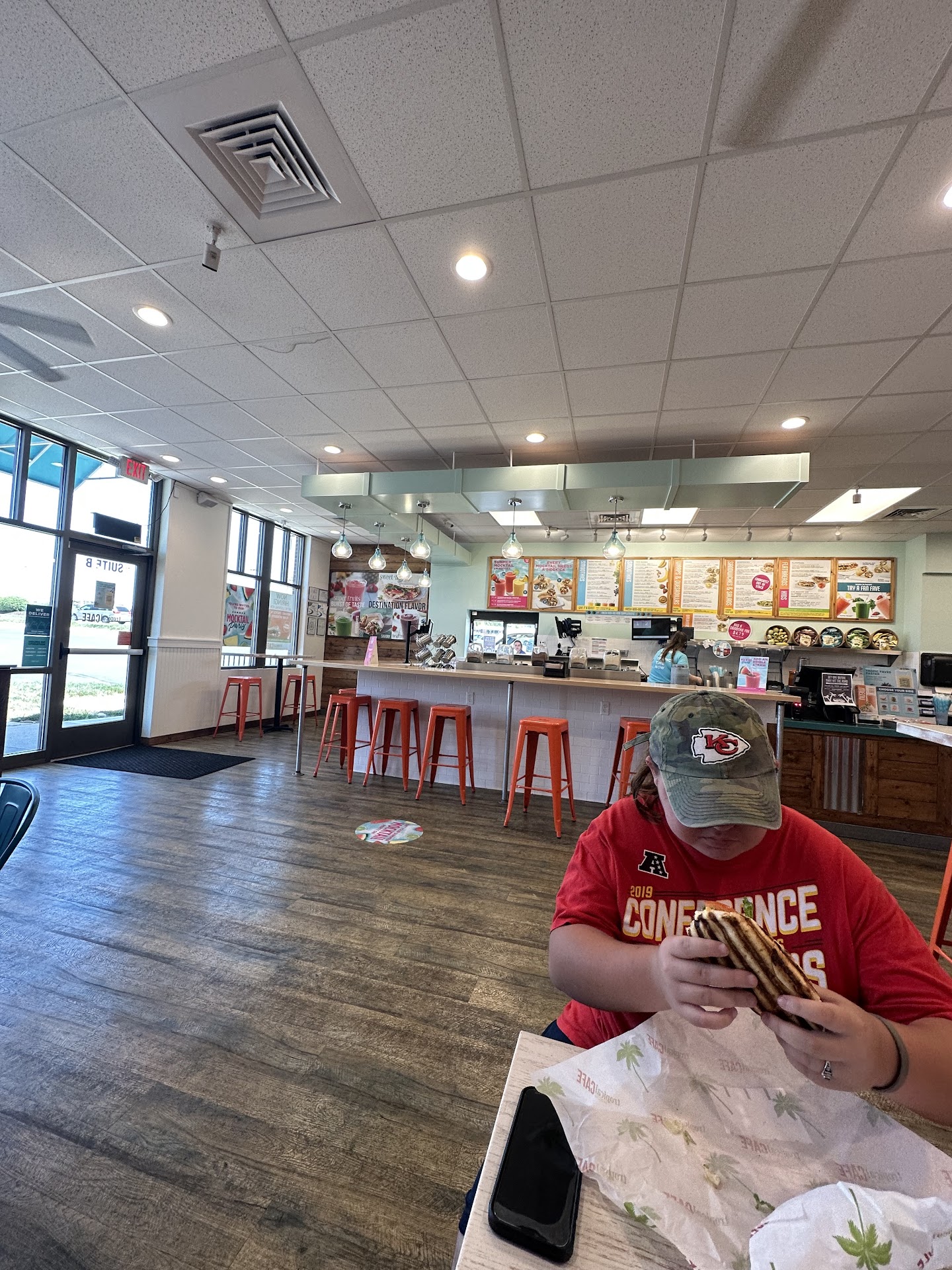 Read moreI love Tropical Smoothie, but this is my least favorite location I've been to. Overall, the staff is nice but seem mostly interested in talking amongst themselves & will sometimes take a little while to get around to taking your order. I love getting the santa fe chicken quesadilla from TS, but several times I've had a bad experience with it here. I've gotten unmelted cheese and luke-warm chicken at my worst visit, but I've also gotten an unsliced quesadilla which makes eating while driving hard, and a time when my quesadilla was slightly burnt. The quesadilla comes with salsa too, and every time but 1 I ordered it, I had to remind the servicemember...